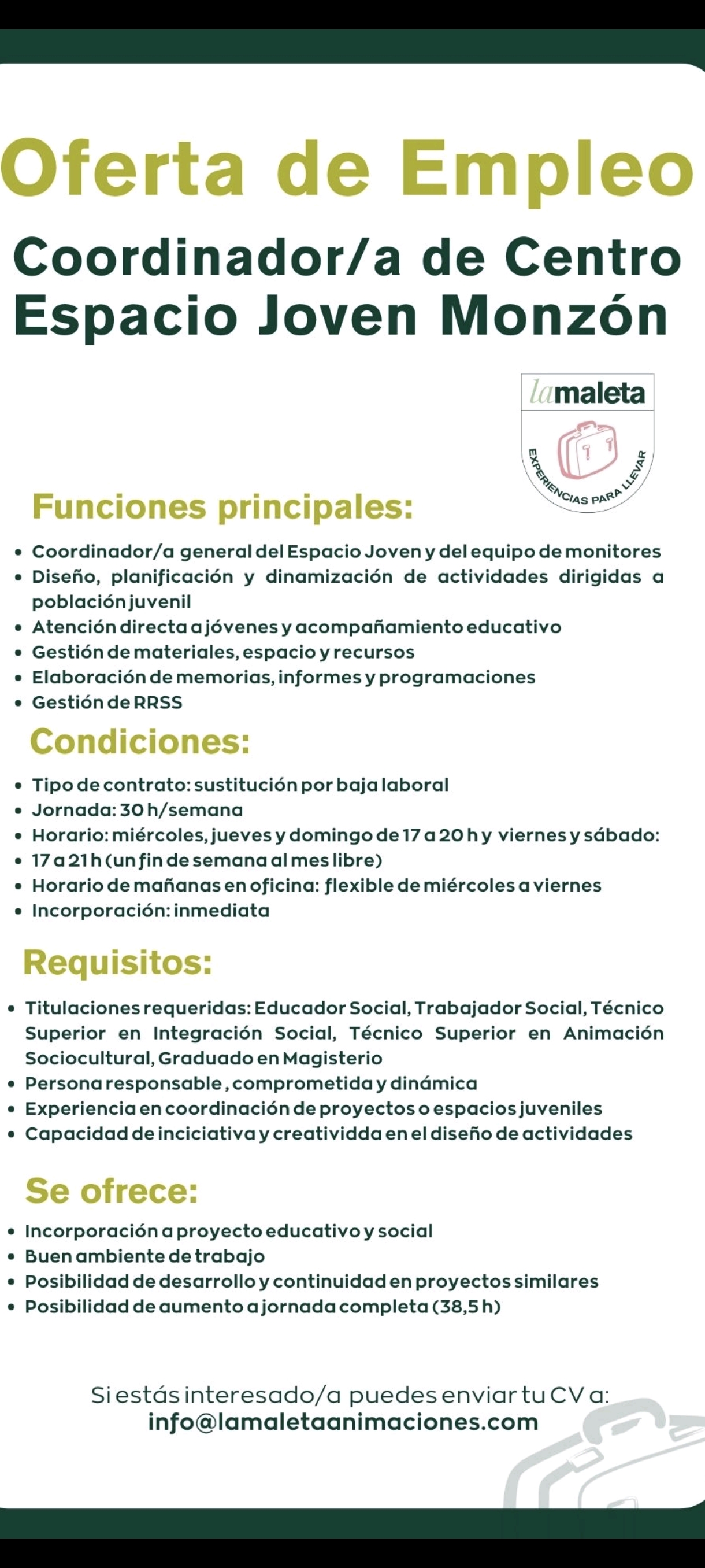 - Coordinador/a del Espacio Joven de Monzón