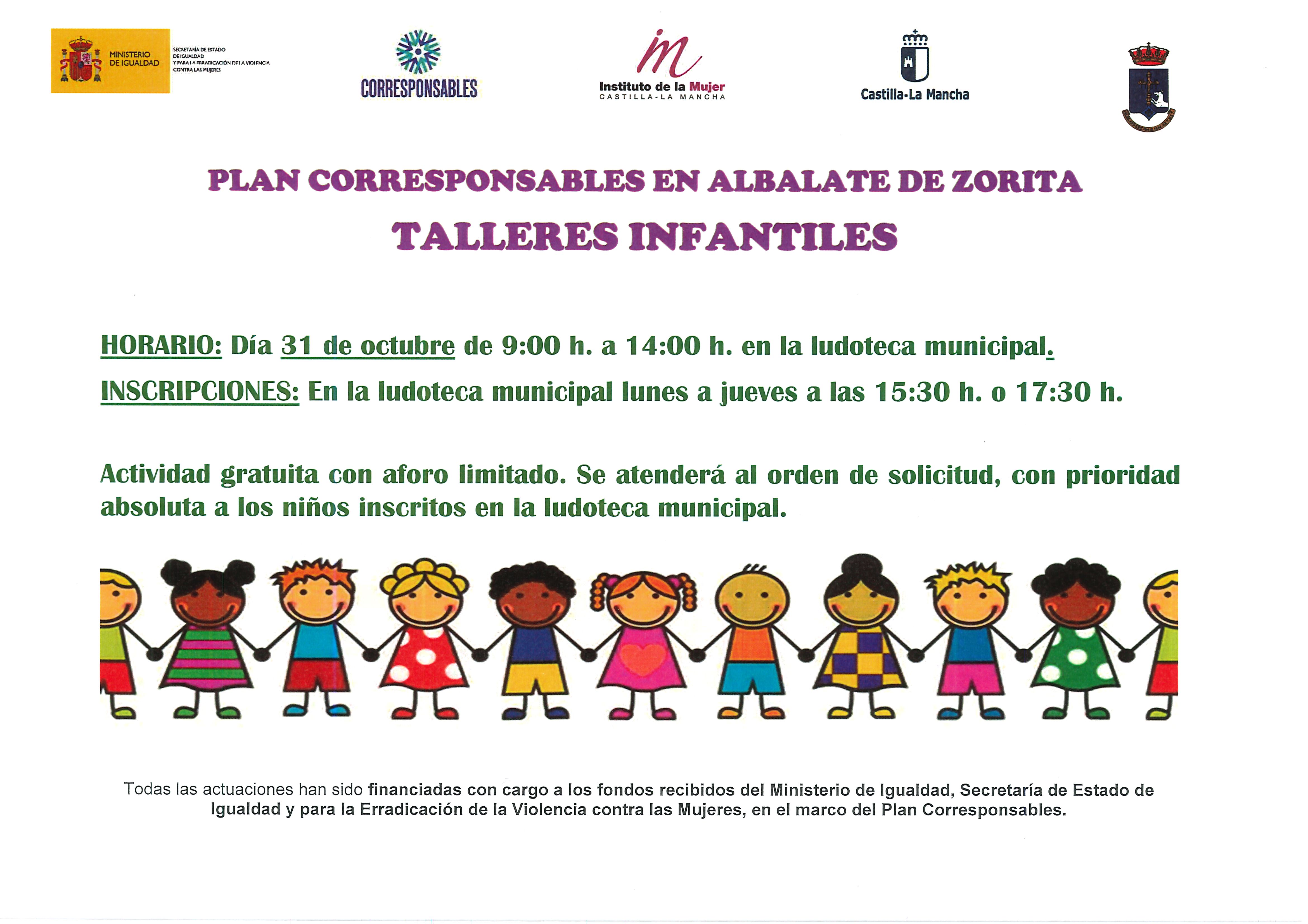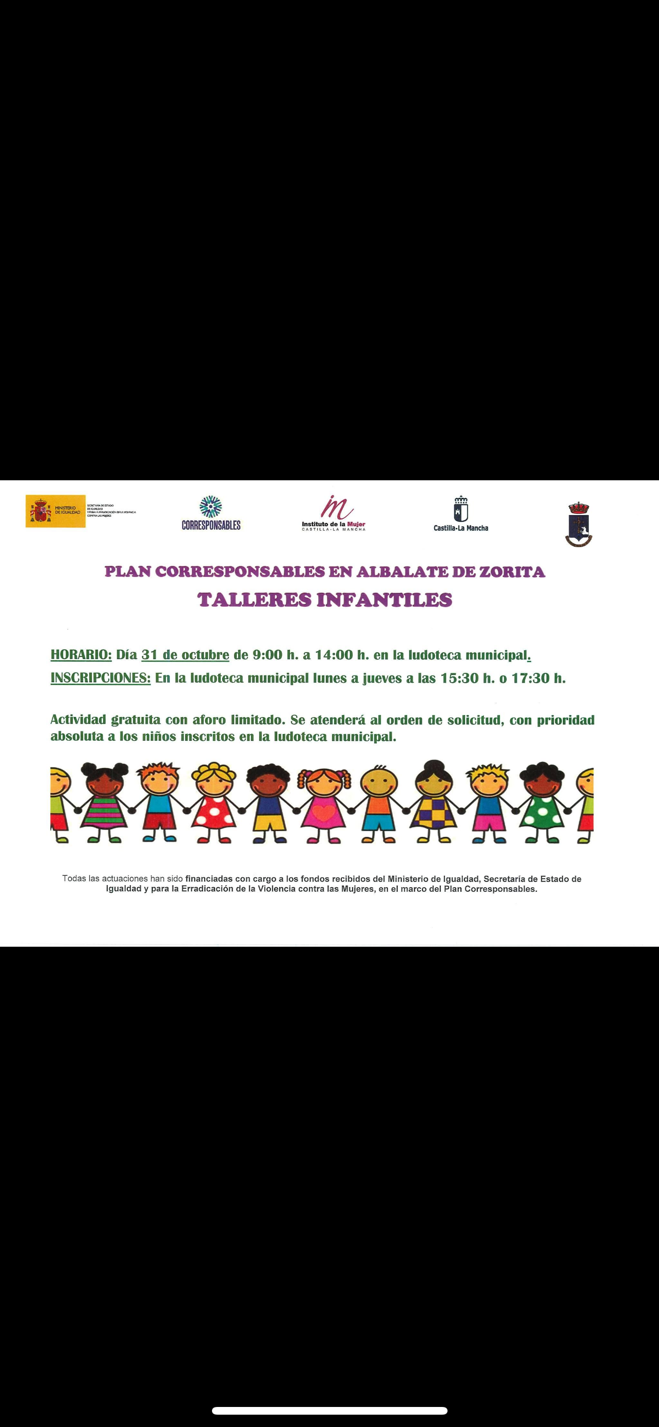 Dado que el próximo día 31 de octubre es no lectivo y, por lo tanto, no habrá colegio, el Ayuntamiento de Albalate de Zorita ha organizado un taller infantil con el fin de ayudar a la conciliación de la vida laboral y familiar destinado a aquellas familias que lo necesiten.