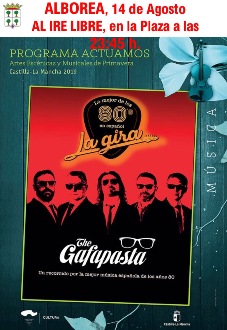 El lunes 14 de agosto a las 23.45 hs. en la plaza: The Gafapasta. Grupo que versiona los grandes éxitos de la década de los 80'.