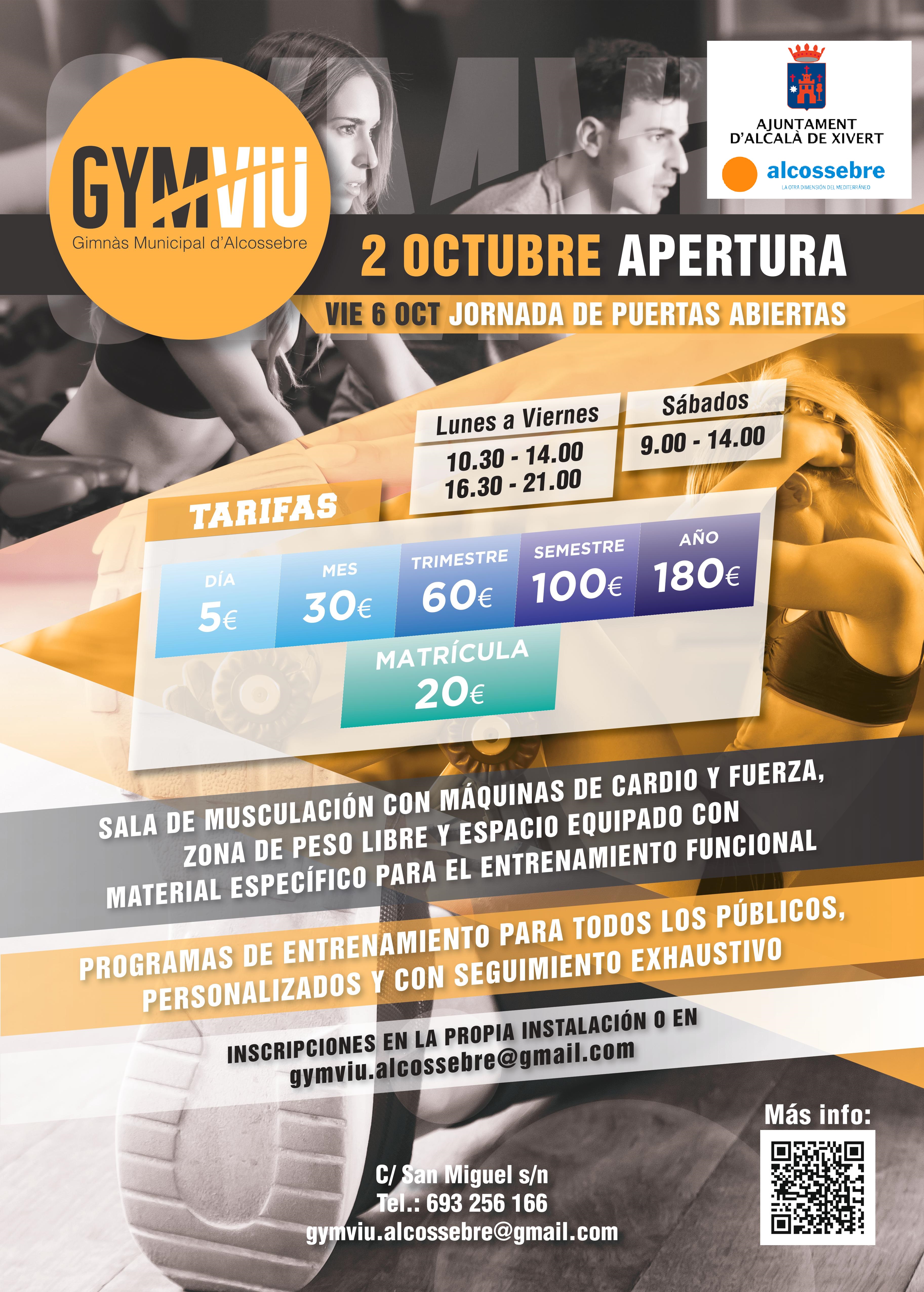 INAUGURACIÓ GIMNÀS MUNICIPAL2017-10-05 13:17:03CulturaDemà divendres 6 octubre. 19.00h Inauguració i portes obertes del nou gimnàs municipal d\'Alcossebre.