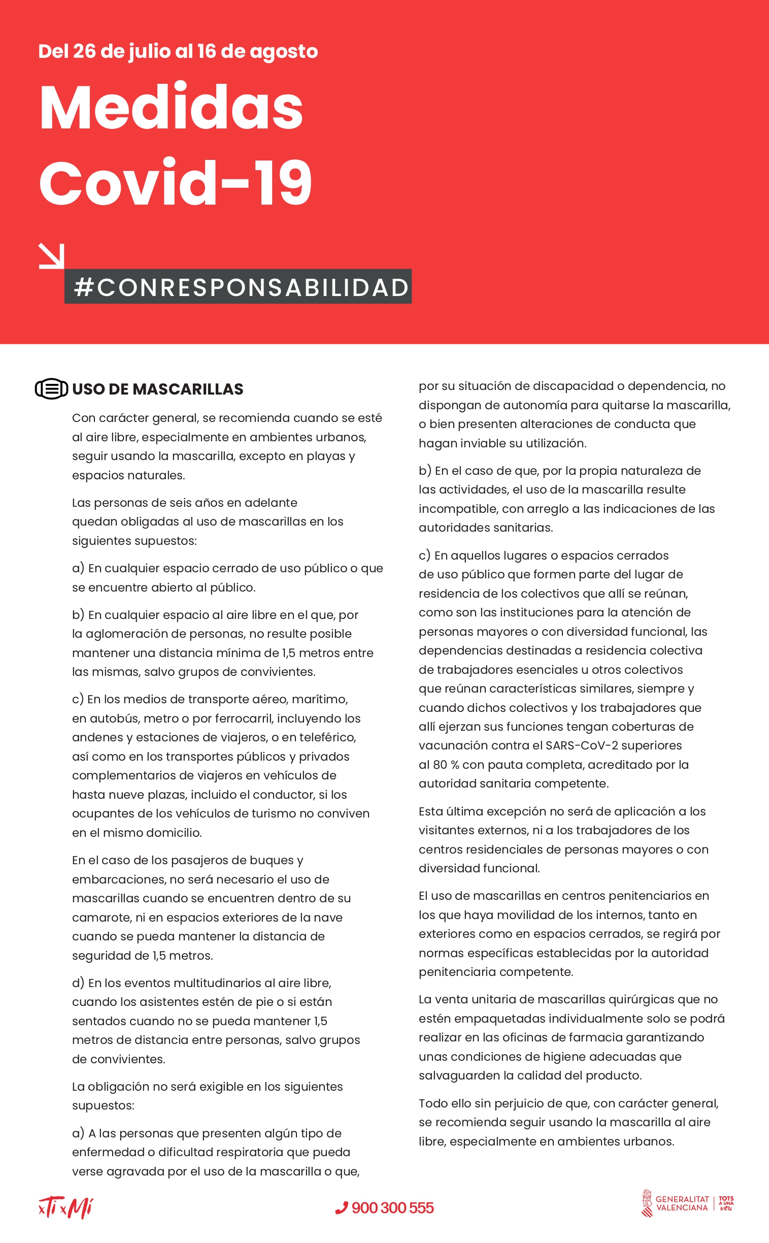 🔴Recomendaciones respecto al uso de la mascarilla 😷 para evitar la propagación de COVID-19, dentro Medidas adoptadas por la Generalitat Valenciana en vigor hasta el 16 de agosto 👇