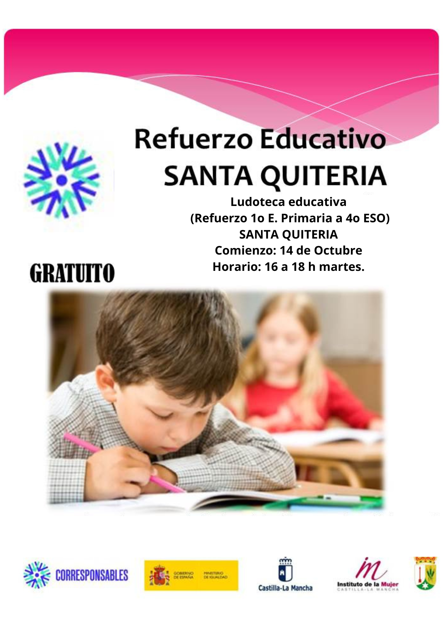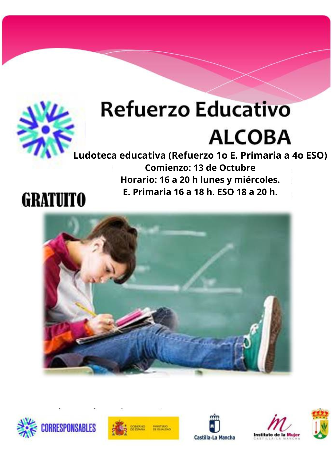 Adjuntamos cartel informativo para las actividades de refuerzo educativo del Plan Corresponsables en Alcoba y Santa Quiteria, para alumnado de 1º de Primaria a 4º de ESO.