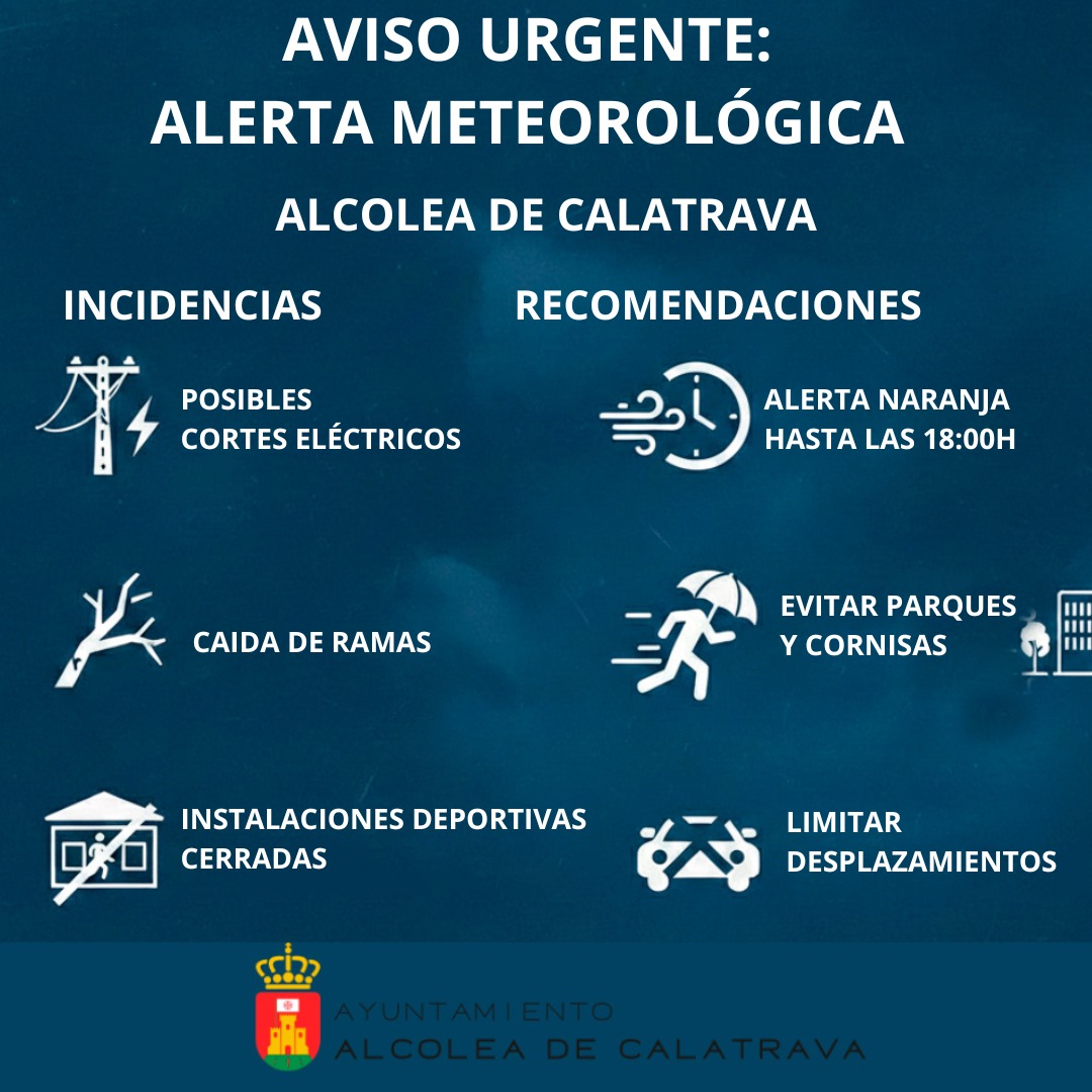 El Ayuntamiento de Alcolea de Calatrava informa que, debido a las fuertes rachas de viento y las inclemencias meteorológicas adversas registradas hoy, 5 de febrero de 2026, se adoptan las siguientes medidas preventivas de forma inmediata: