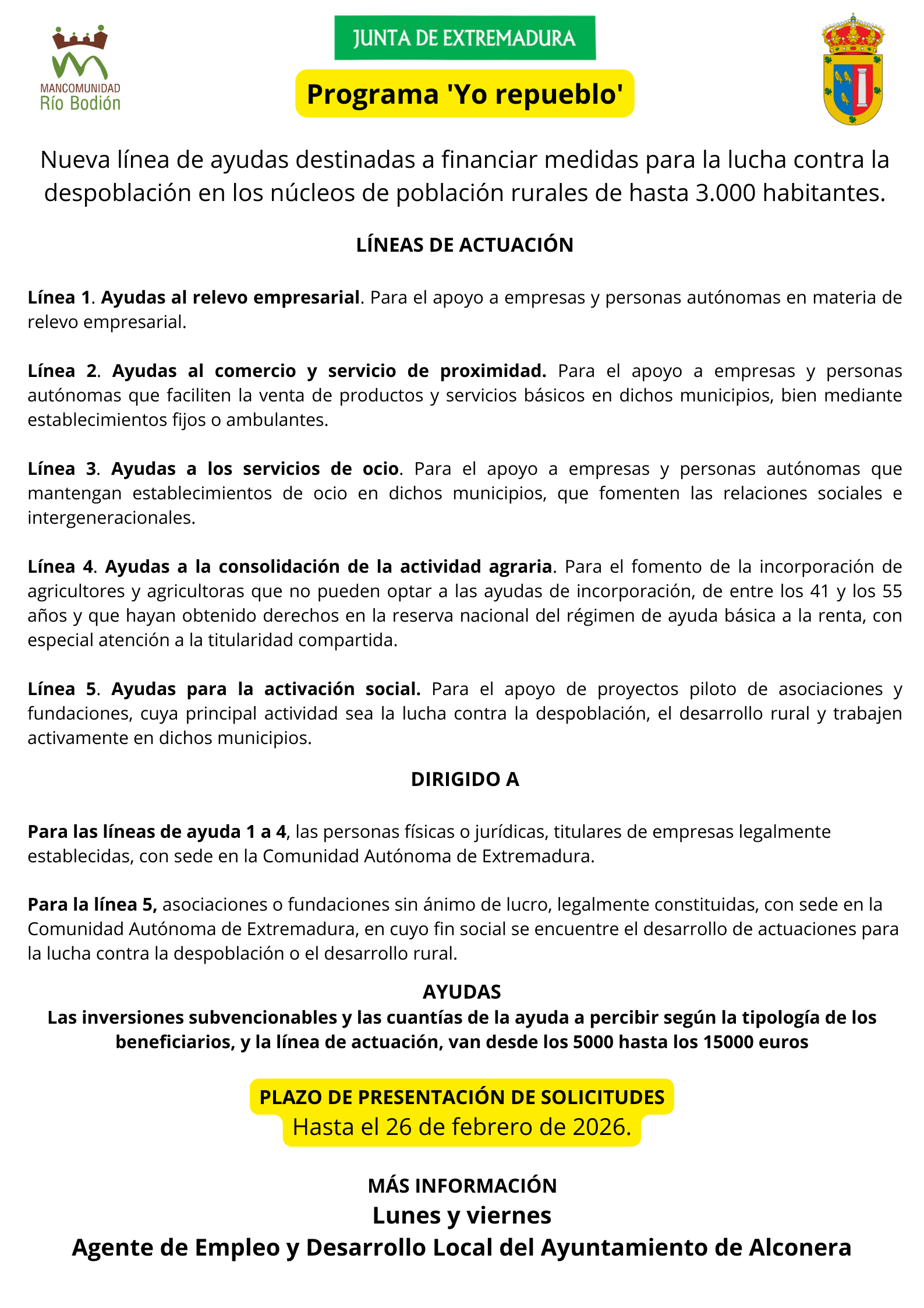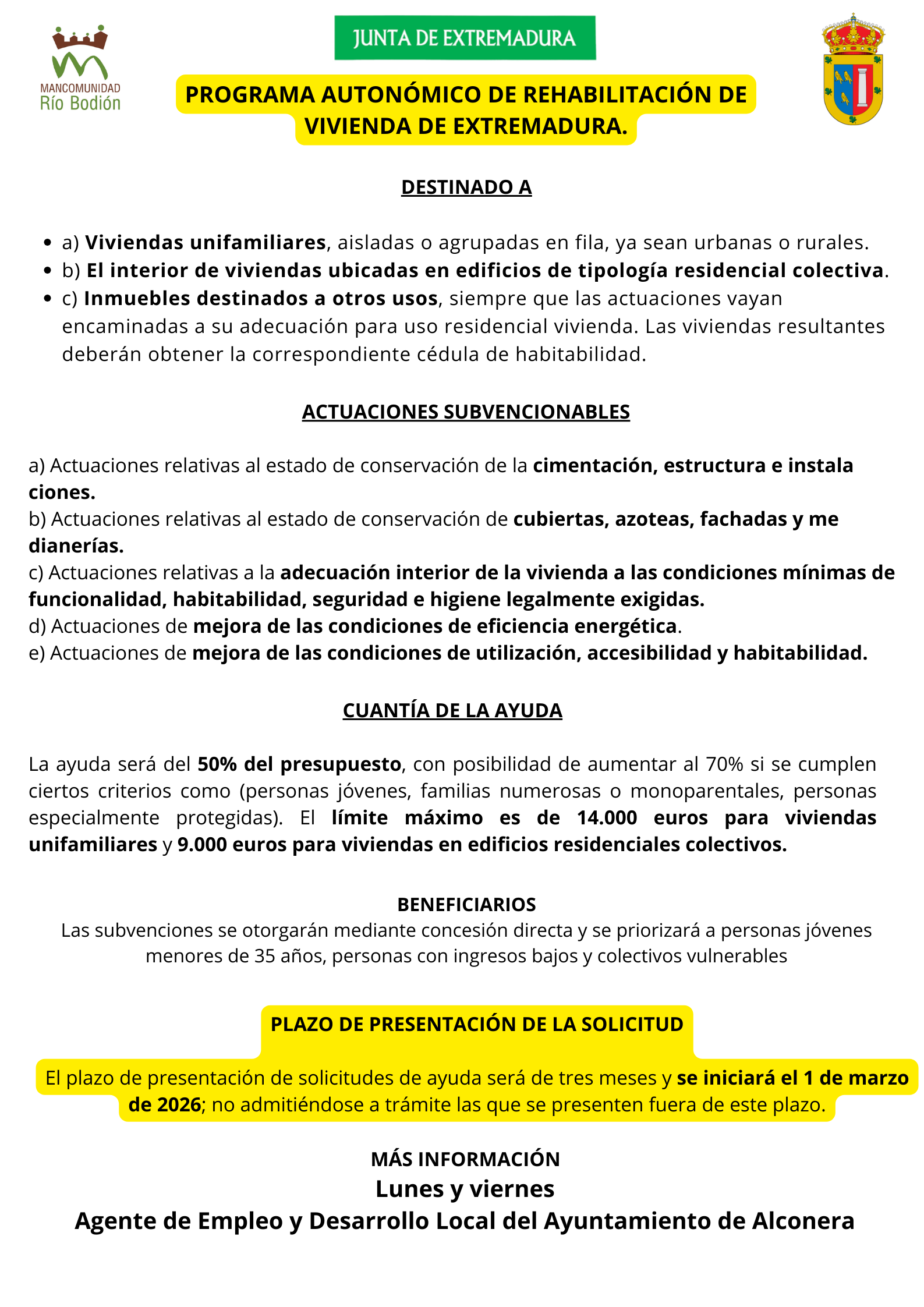 Nuestro Ayuntamiento cuenta con el Programa PCEMO (Programa de Colaboración Económica Municipal de Orientación y Prospección para el Desarrollo Local), una iniciativa de la Junta de Extremadura a través del SEXPE y los ayuntamientos, que busca mejorar la empleabilidad, apoyar a desempleados y fomentar la economía local mediante servicios de orientación laboral e intermediación.