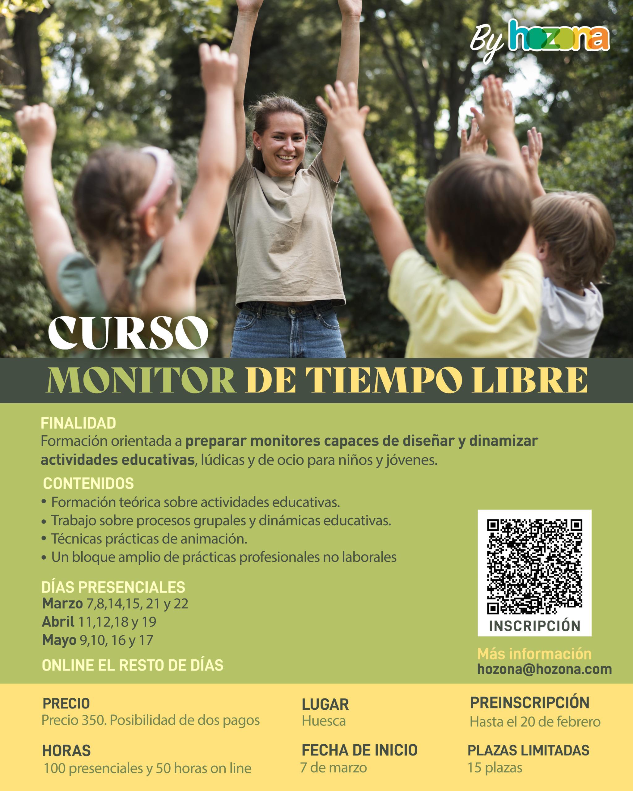 📢 Se comunica la convocatoria de un curso de monitor/a de tiempo libre impartido por Hozona, motivada por la necesidad de personal en varias localidades.