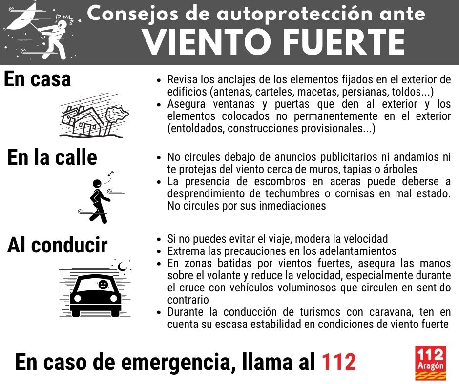 Mantenga el mayor nivel de alerta posible para comunicar cualquier emergencia a 112 ARAGON.