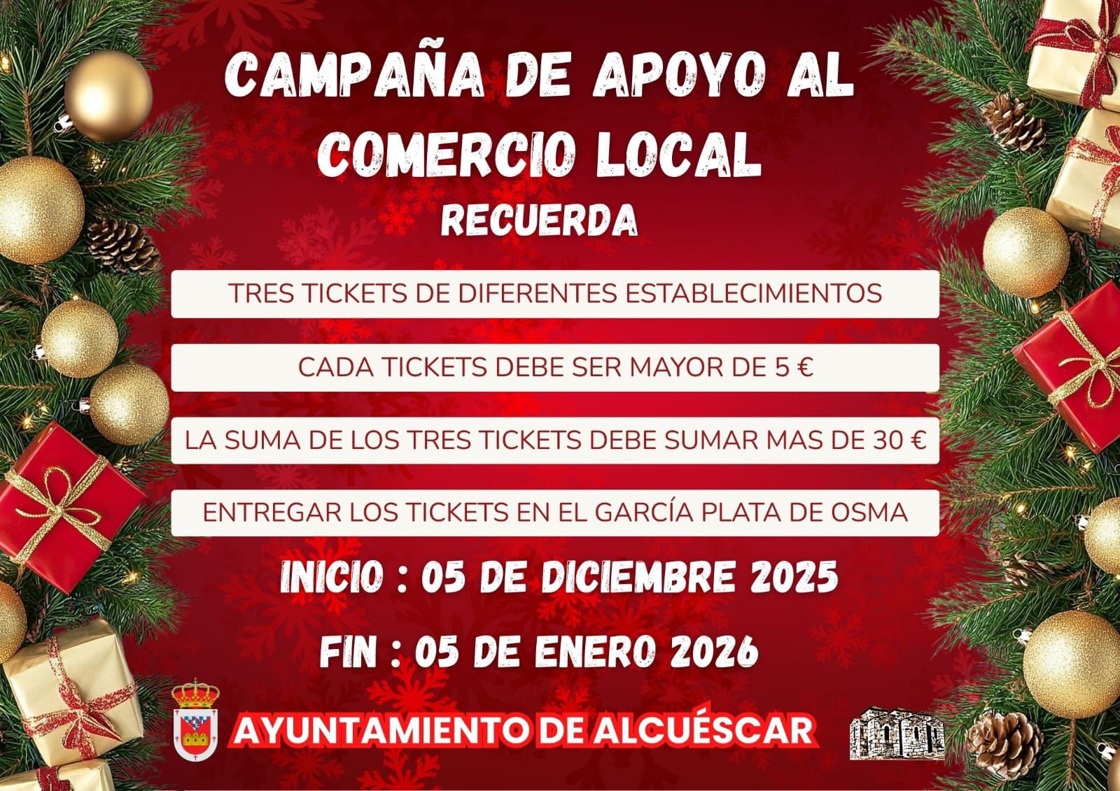 Los Tickets estarán a la venta en el C.T.C. GARCÍA PLATA DE OSMA, a partir de mañana 3 de diciembre.