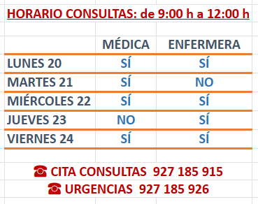 Mañana, miércoles día 22, a partir de las 9:30 h, será la consulta de podología para todas aquellas personas que tengan cita.