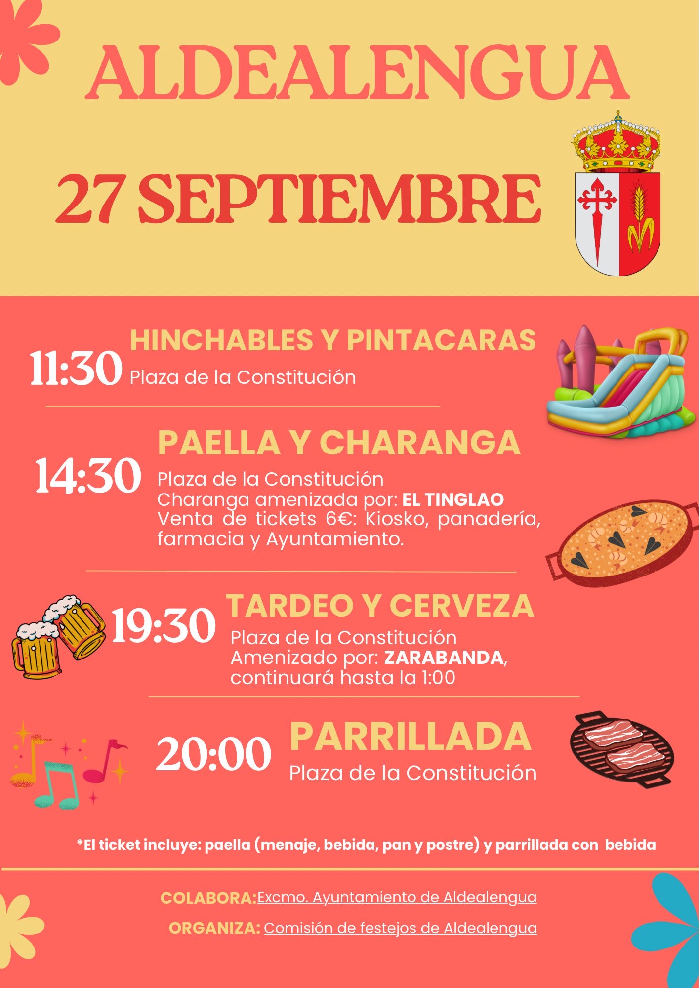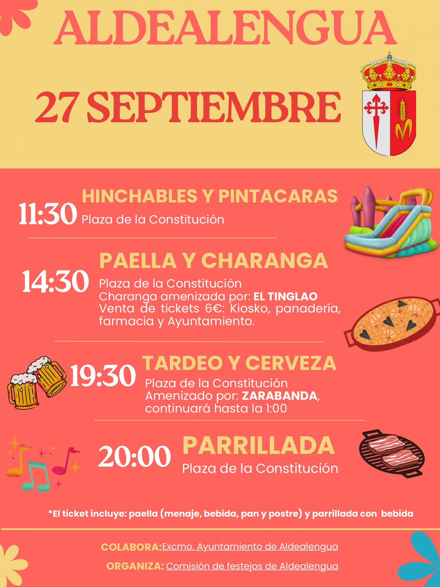 BUENAS TARDES OS INFORMAMOS DE QUE EL SÁBADO 27 VIVIREMOS EN ALDEALENGUA UNA FIESTA DE FIN DE VERANO, LLENA DE ACTIVIDADES PARA TODAS LAS EDADES. OS DETALLAMOS LAS MISMAS.