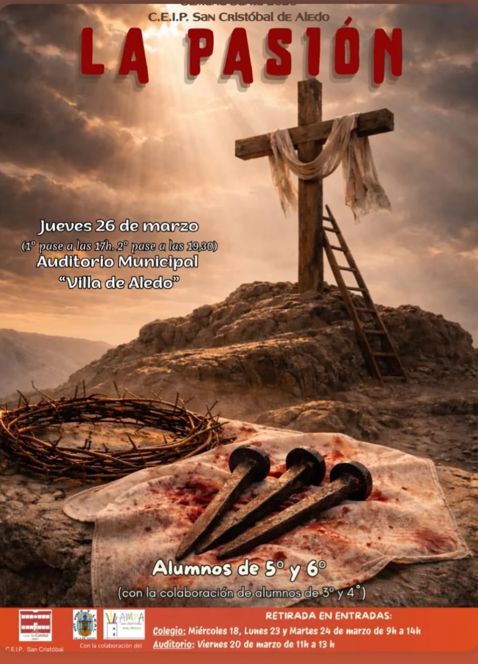 Mañana, jueves 25 de marzo, los niños del colegio representarán en el Centro Sociocultural, La Pasión, una obra muy especial llena de ilusión y esfuerzo.