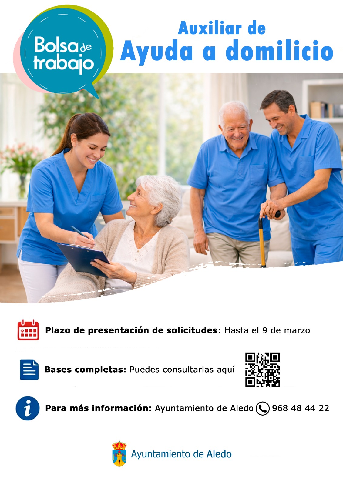 El Ayuntamiento de Aledo abre la bolsa de empleo de Auxiliar del Servicio de Ayuda a Domicilio.