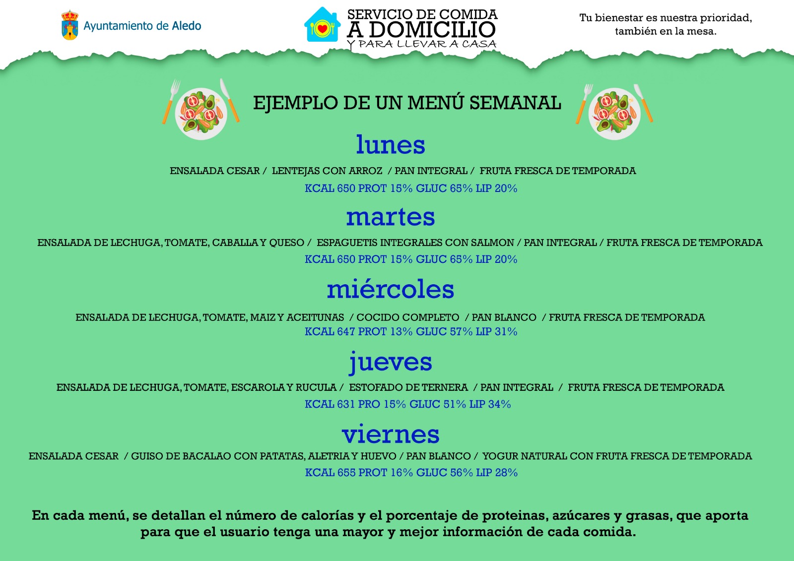 El Servicio Municipal de Comida a Domicilio y Para Llevar tiene como objetivo garantizar una alimentación equilibrada, saludable y adaptada a las necesidades de la ciudadanía, especialmente de personas mayores, personas en situación de dependencia o discapacidad, y en general todo el que vea en este servicio, una solución para acceder a una alimentación equilibrada y de calidad, de una manera sencilla