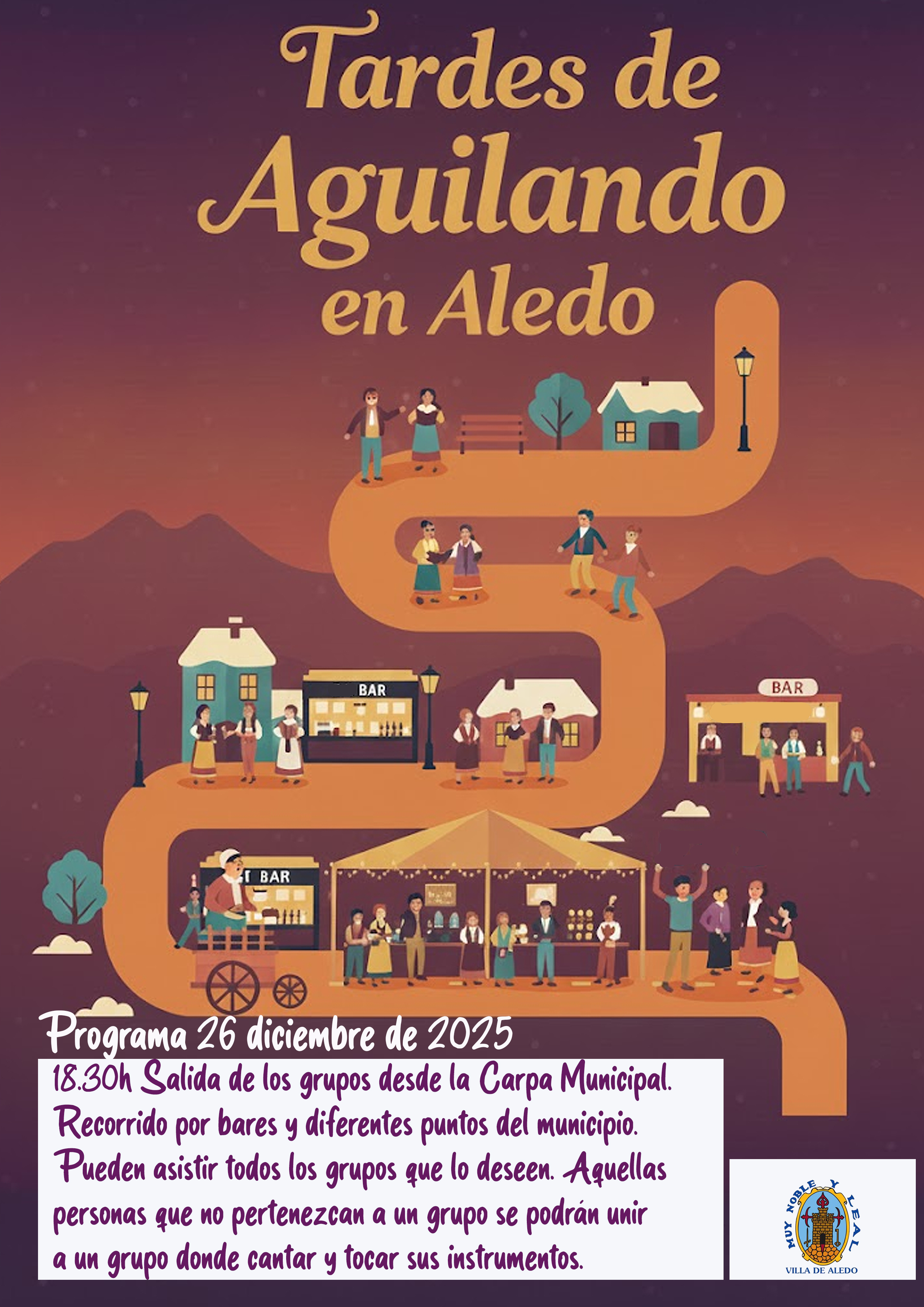 Te recordamos que esta tarde a las 18.30 en la plaza de la Diputación comenzará el recorrido de la Tarde de Aguilandos, donde podremos cantaremos por las calles y bares del municipio. Si tienes tu propio grupo, os esperamos a todos y si no tienes grupo no te preocupes, te podrás unir a un grupo para ir cantando por las calles y que no se pierda esta tradición tan nuestra como es cantar por las calles. Al finalizar habrá un picoteo para los participantes en la carpa municipal. Esperamos tu a(...)