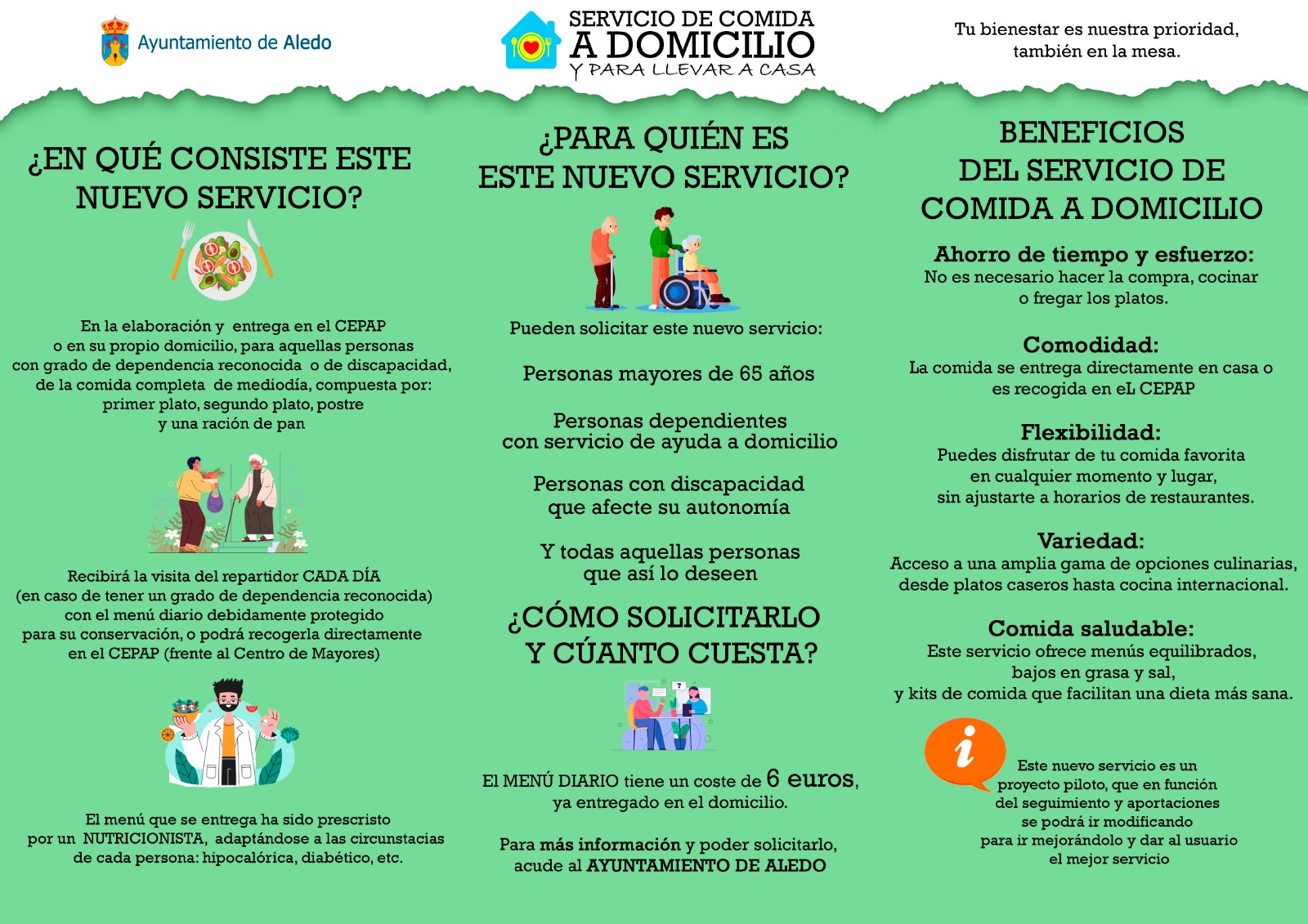 Desde el Ayuntamiento recordamos que sigue en marcha el Servicio de Comidas a Domicilio, pensado especialmente para el bienestar y la comodidad de nuestras personas mayores.