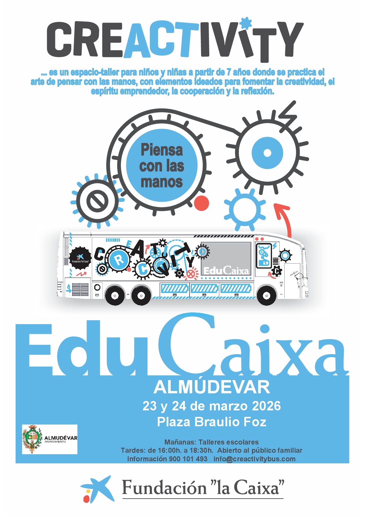 Hoy lunes y mañana martes estará en Almudévar, en la plaza Braulio Foz, Creactivity de Educaixa, un espacio interactivo donde los niños y niñas pueden diseñar, experimentar y dar rienda suelta a su creatividad.