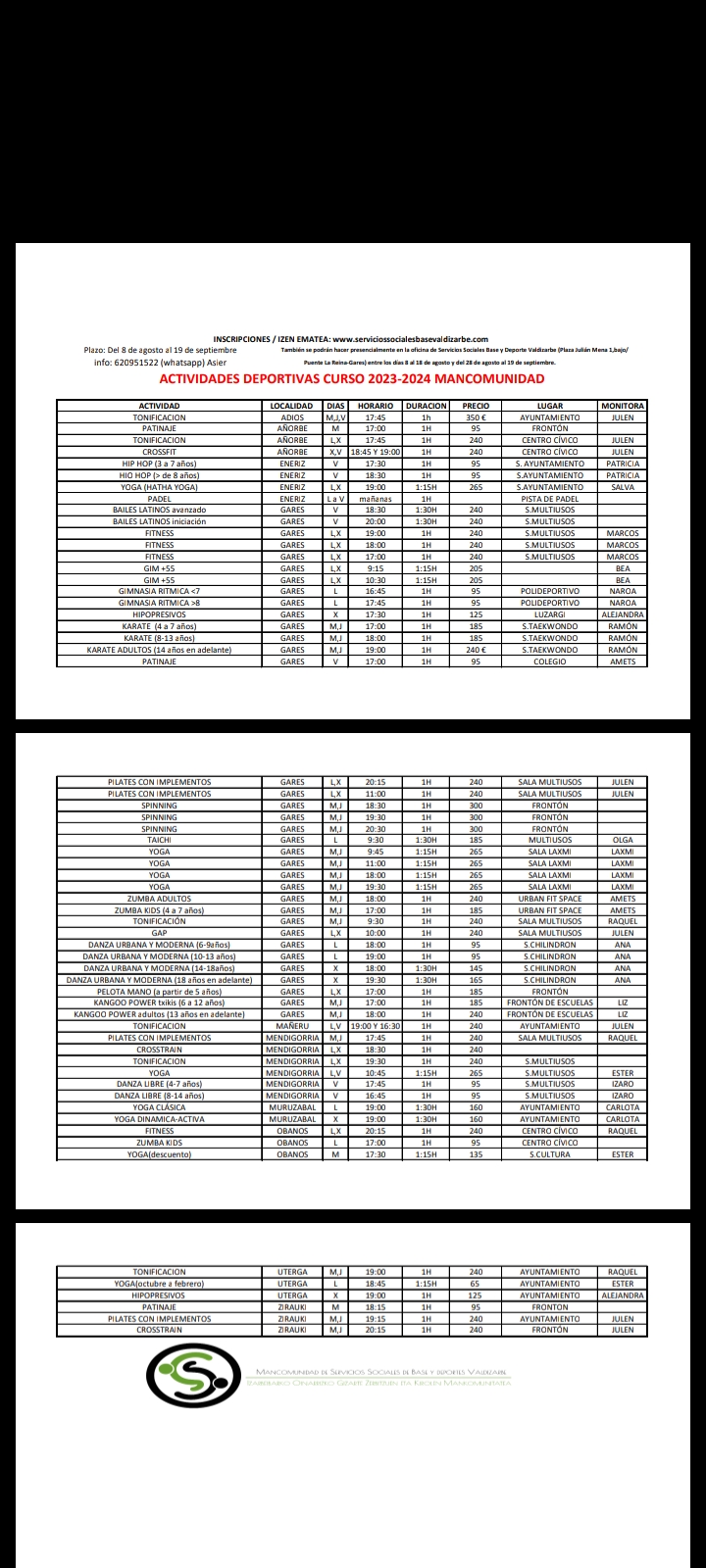 3. Vía online: http://www.serviciossocialesbasevaldizarbe.com/actividades/