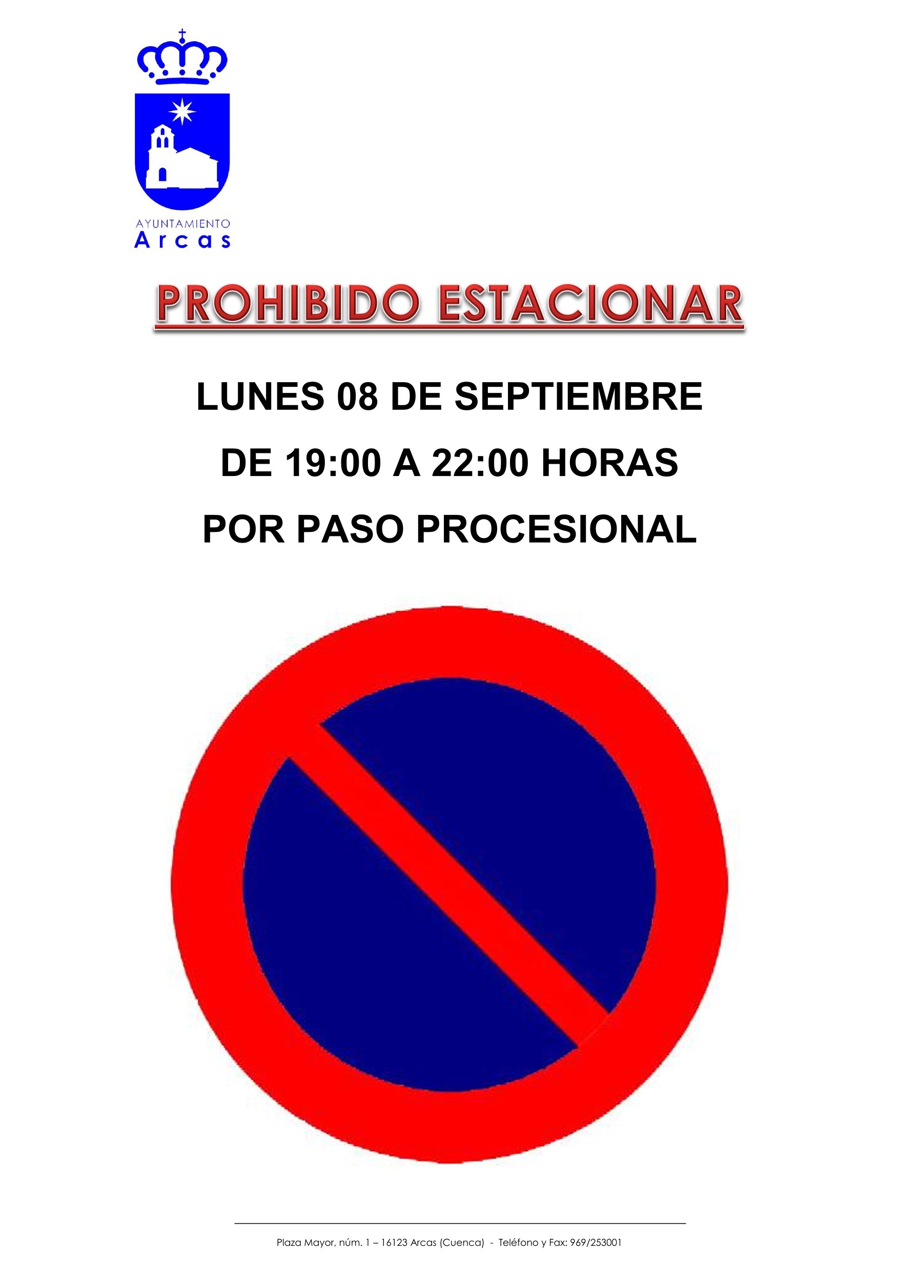 El Ayuntamiento informa que el día 8 de septiembre de 19 a 22 horas, está prohibido estacionar por paso procesional.