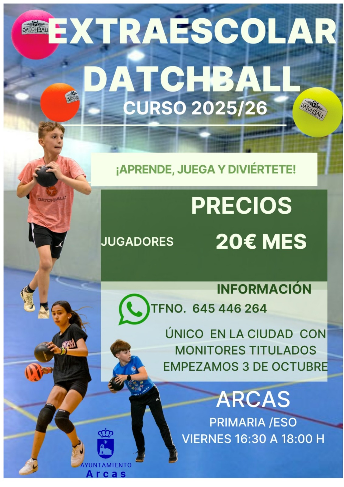 Os presentamos la actividad de Datchball organizada por el Ayuntamiento. Será los viernes de 16:30 a 18:00 horas en el Pabellón. Más información en el cartel.