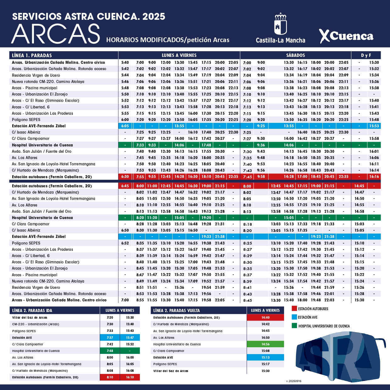 Con motivo de la celebración de las Fiestas Patronales, desde el día 11 al 15 de septiembre, ambos incluidos, la parada de autobús situada en la avenida de la libertad, se traslada a la parada del colegio.Arcas Patrimonio de todos.