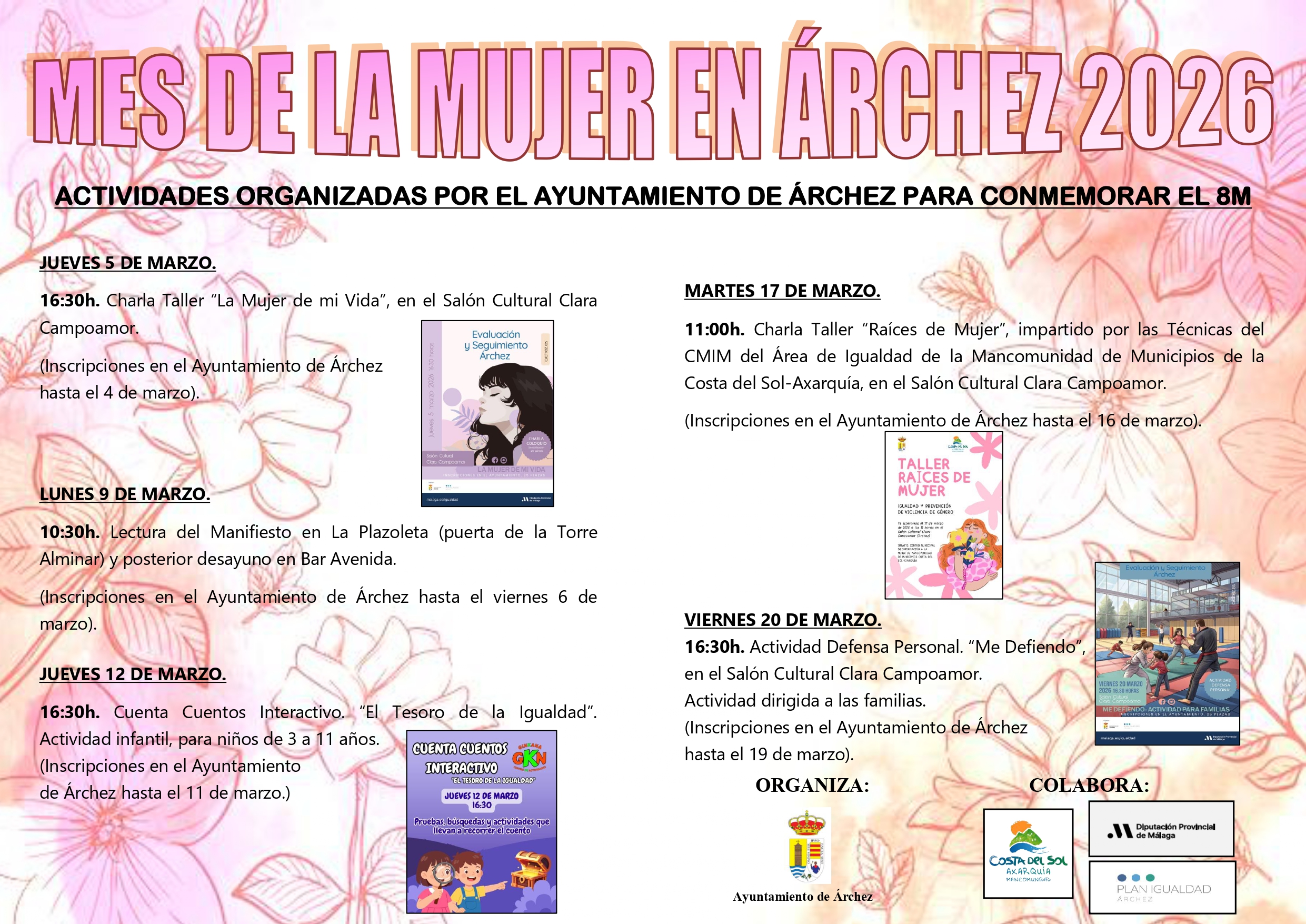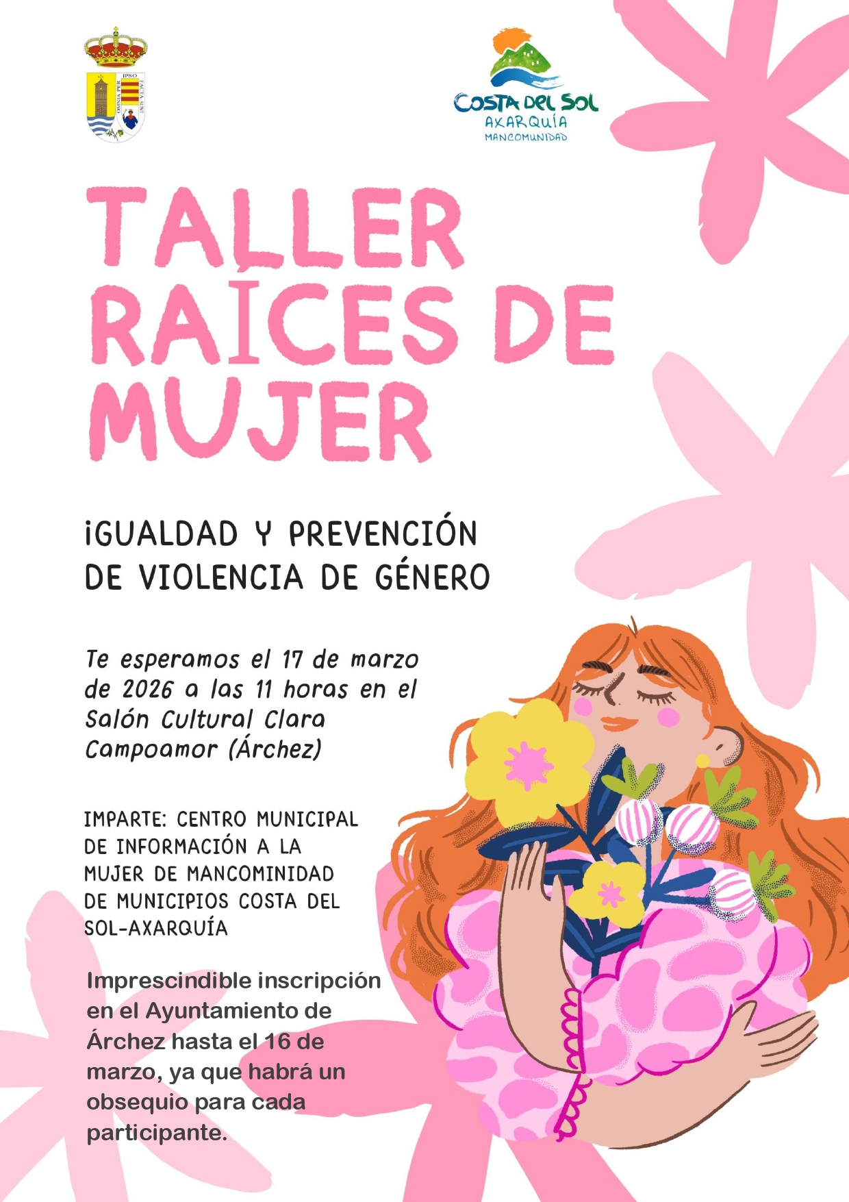 Martes 17 de marzo a las 11:00h en el Salón Cultural Clara Campoamor, impartido por las Técnicas del CMIM del Área de Igualdad de la Mancomunidad de Municipios de la Costa del Sol-Axarquía.