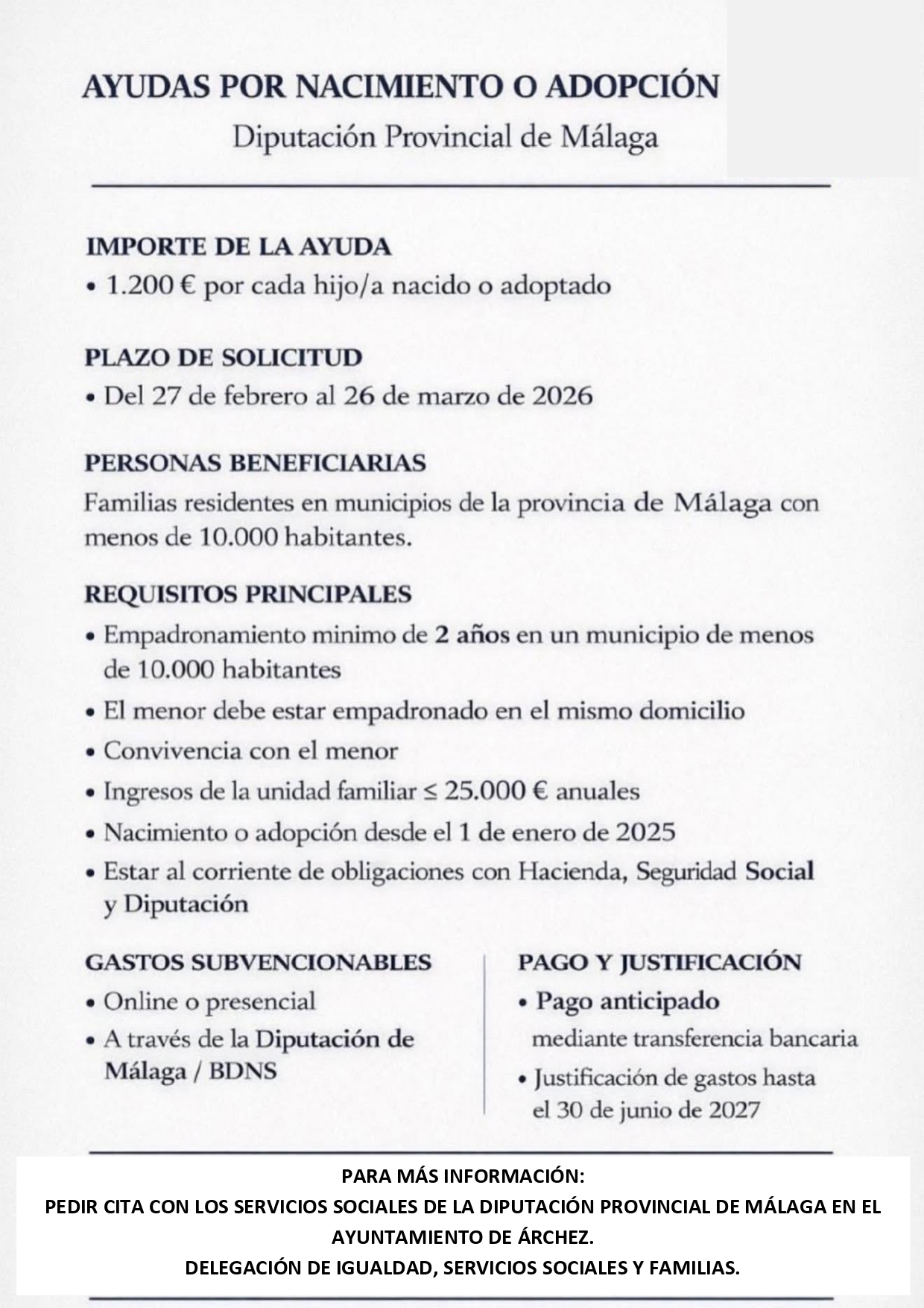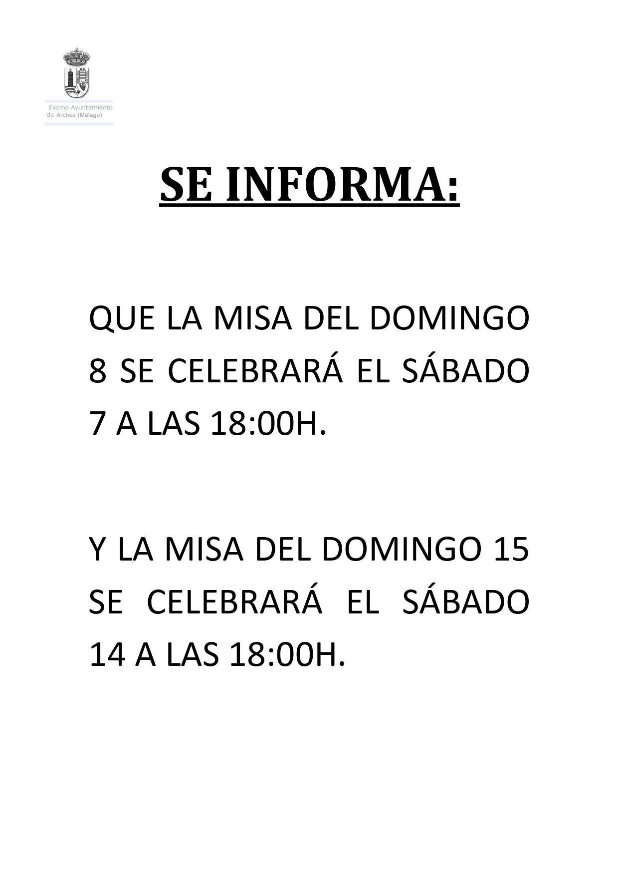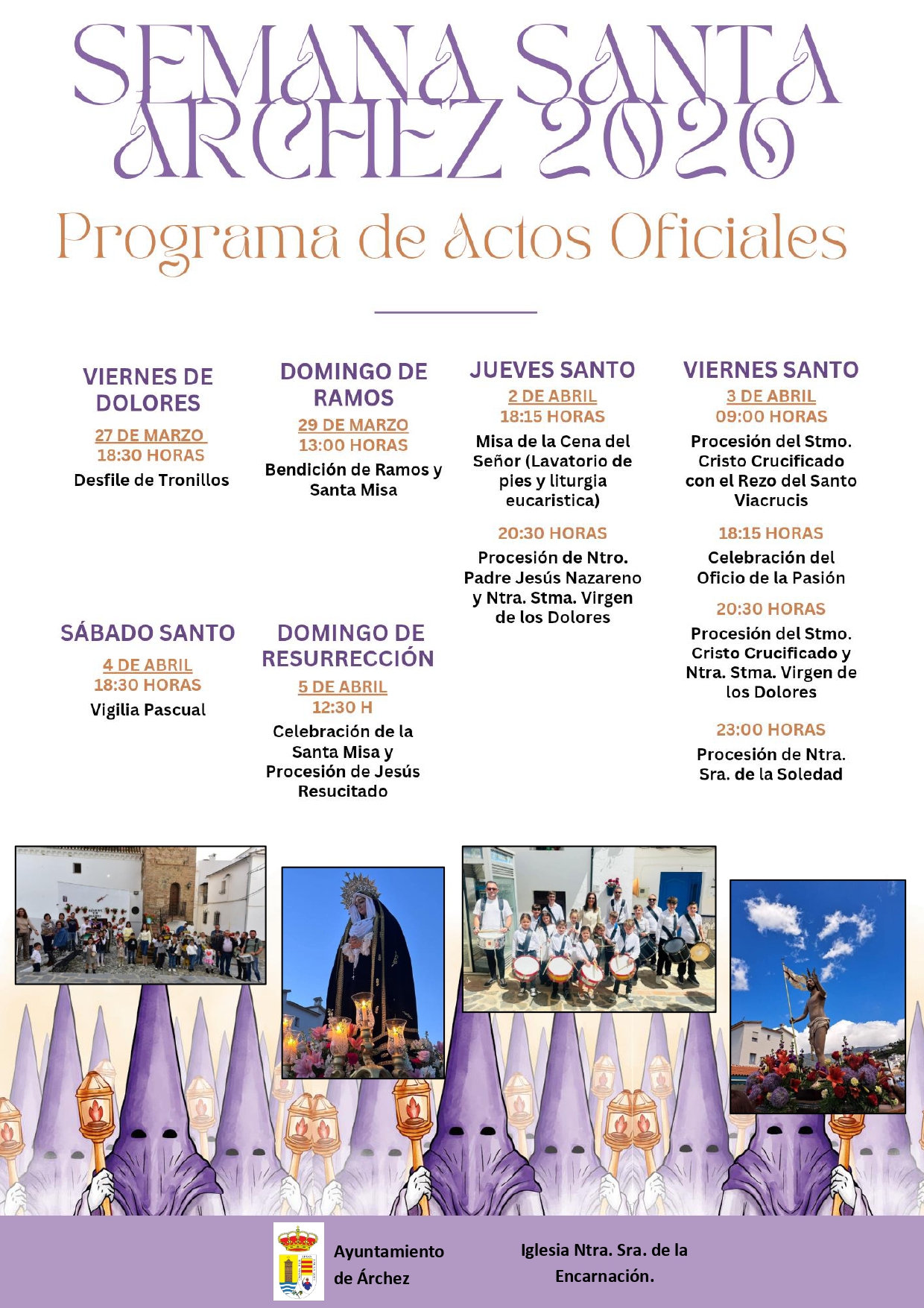 - Miércoles 24 de diciembre: 17:00h. Misa de Nochebuena en la Iglesia de Ntra. Sra. de la Encarnación de Árchez con la Pastoral de Árchez.