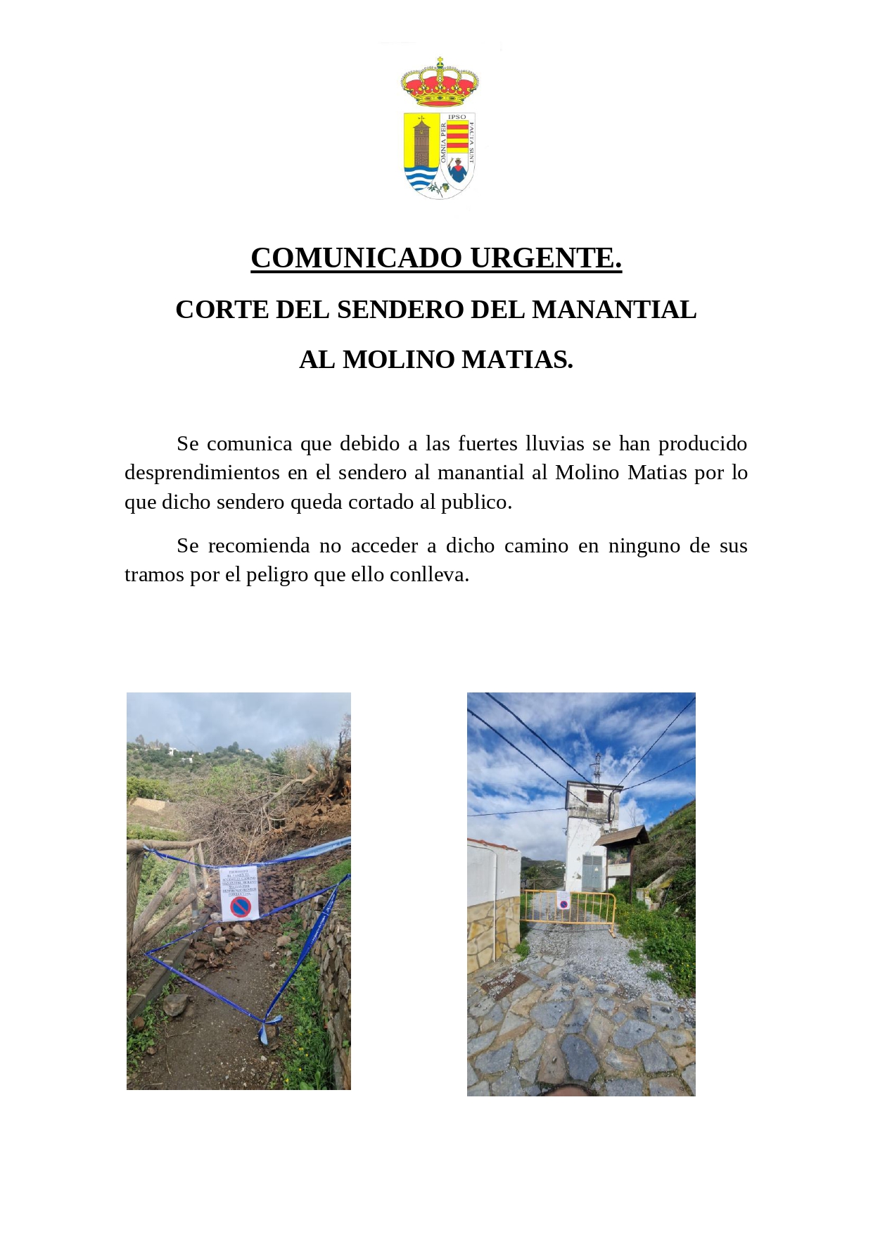 CORTE DEL SENDERO DEL MANANTIAL AL MOLINO MATIAS