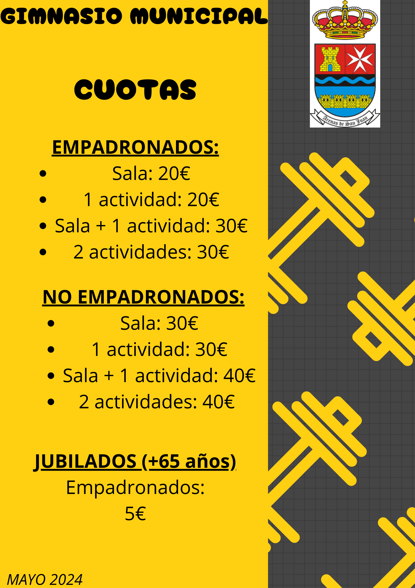 Adjuntamos cartel informativo con las nuevas cuotas que tendrĂ¡ el gimnasio