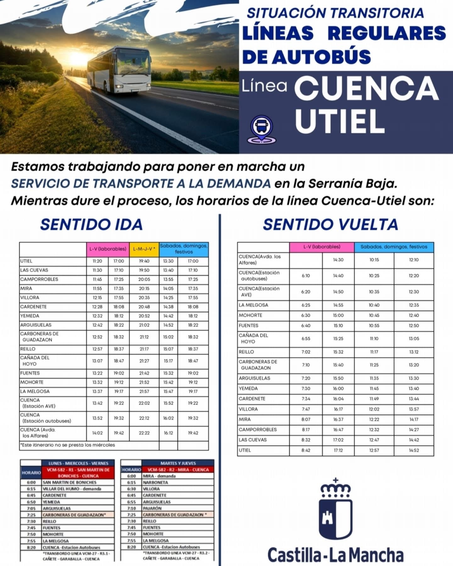 Adjuntamos cuadro horario facilitado por la JCCM con los horarios de autobuses, mientras dure la transición al nuevo modelo.