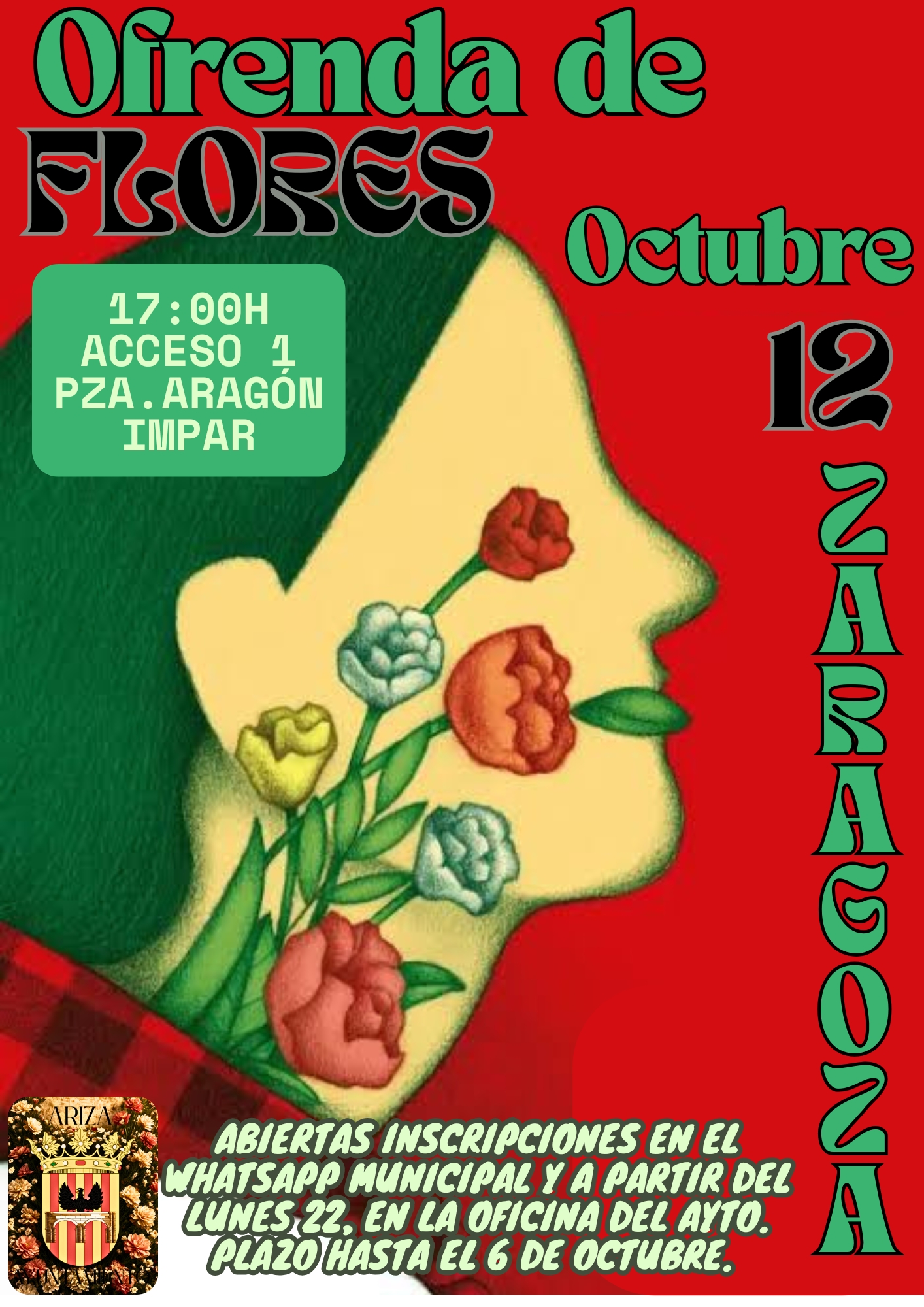 Para las personas interesadas: como viene siendo habitual en los últimos años, el Ayuntamiento de Ariza se inscribe para pasar en la ofrenda de flores de Zaragoza. Si quieres formar parte del grupo de nuestro pueblo, ya puedes inscribirte por WhatsApp y a partir del lunes también en la oficina municipal.