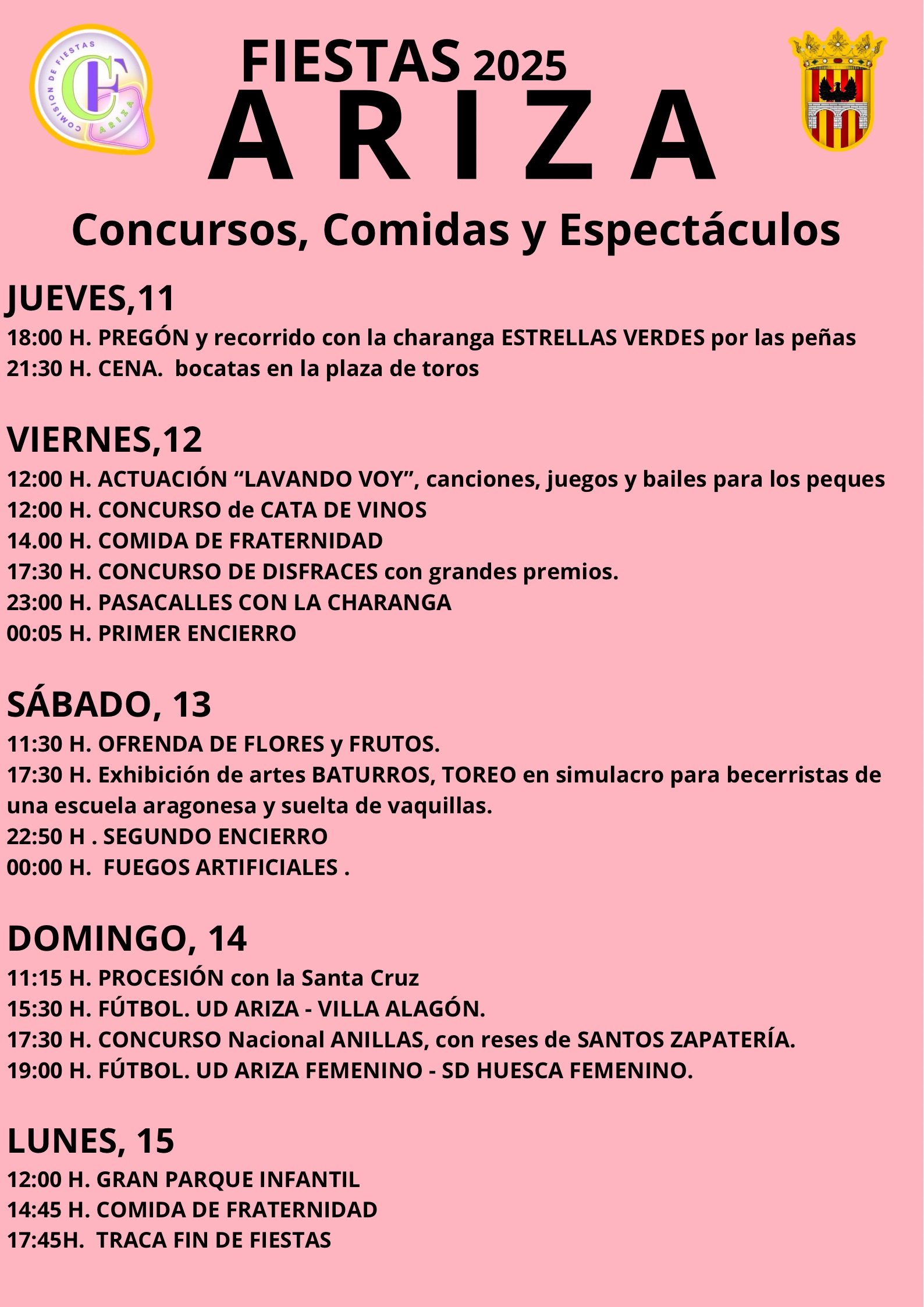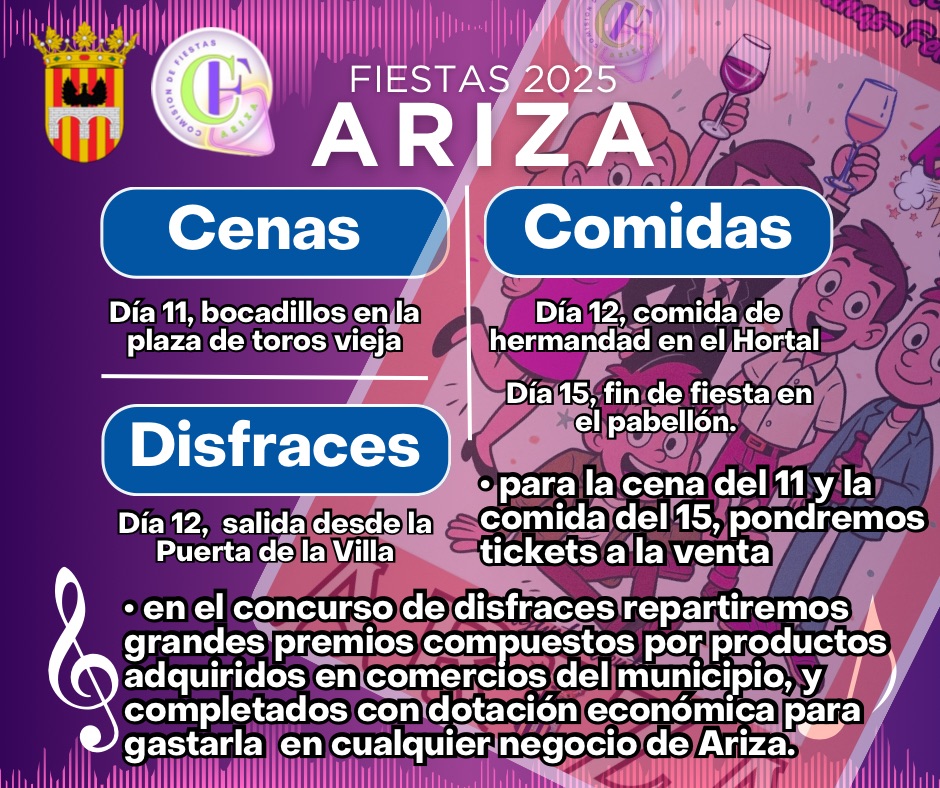 Aunque seguiremos repartiendo y vendiendo de manera tradicional los programas en formato papel, aquí adjuntamos el programa de fiestas de este año. Unos actos que desde la comisión de fiestas se han diseñado para que los disfrutemos todas y todos. Se han programado con mucha ilusión y mucho cariño, con el deseo de que todas y todos los arizanos pasemos unas fiestas inolvidables. Desde el Ayuntamiento queremos agradecer a todas las personas que la forman, por esa