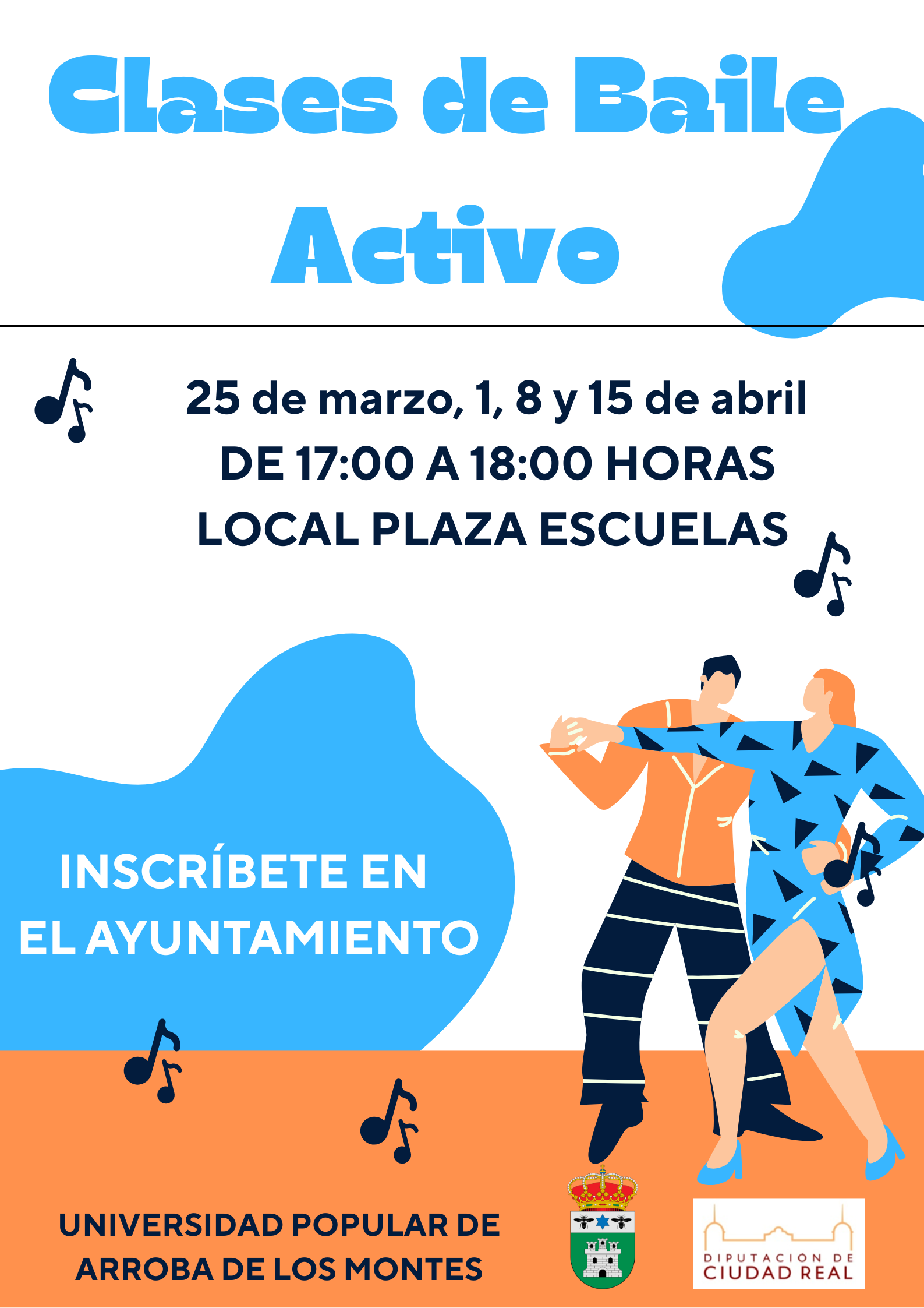 CLASES DE BAILE ACTIVO2026-03-19 10:29:44Universidad PopularSe informa a toda la población que el próximo miércoles 25 de marzo en el local de Plaza de las Escuelas en horario de 17:00 a 18:00 horas comenzarán clases de baile activo.