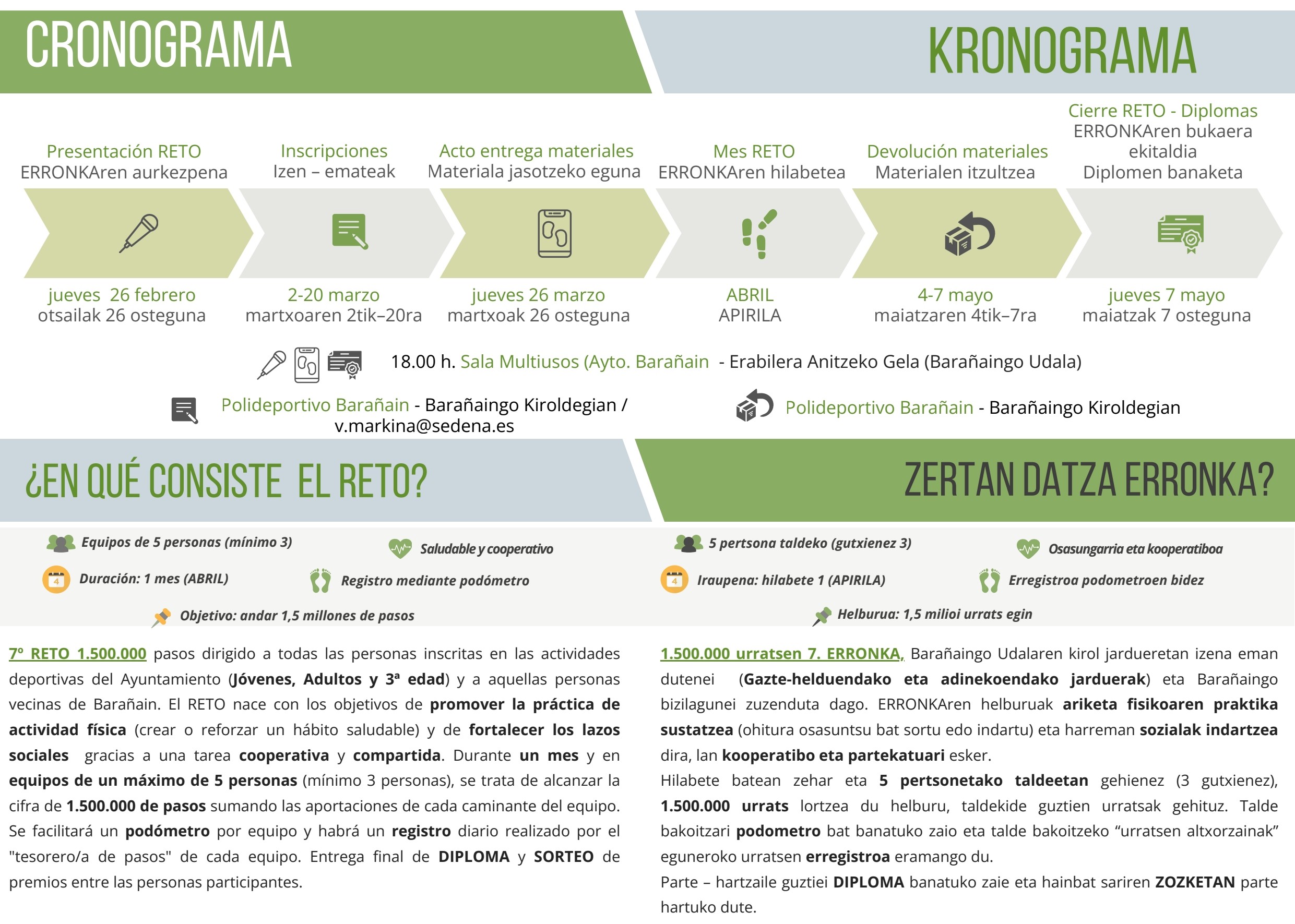 Reto dirigido a todas las personas inscritas en las actividades deportivas del Ayuntamiento y a aquellas personas vecinas de Barañain.