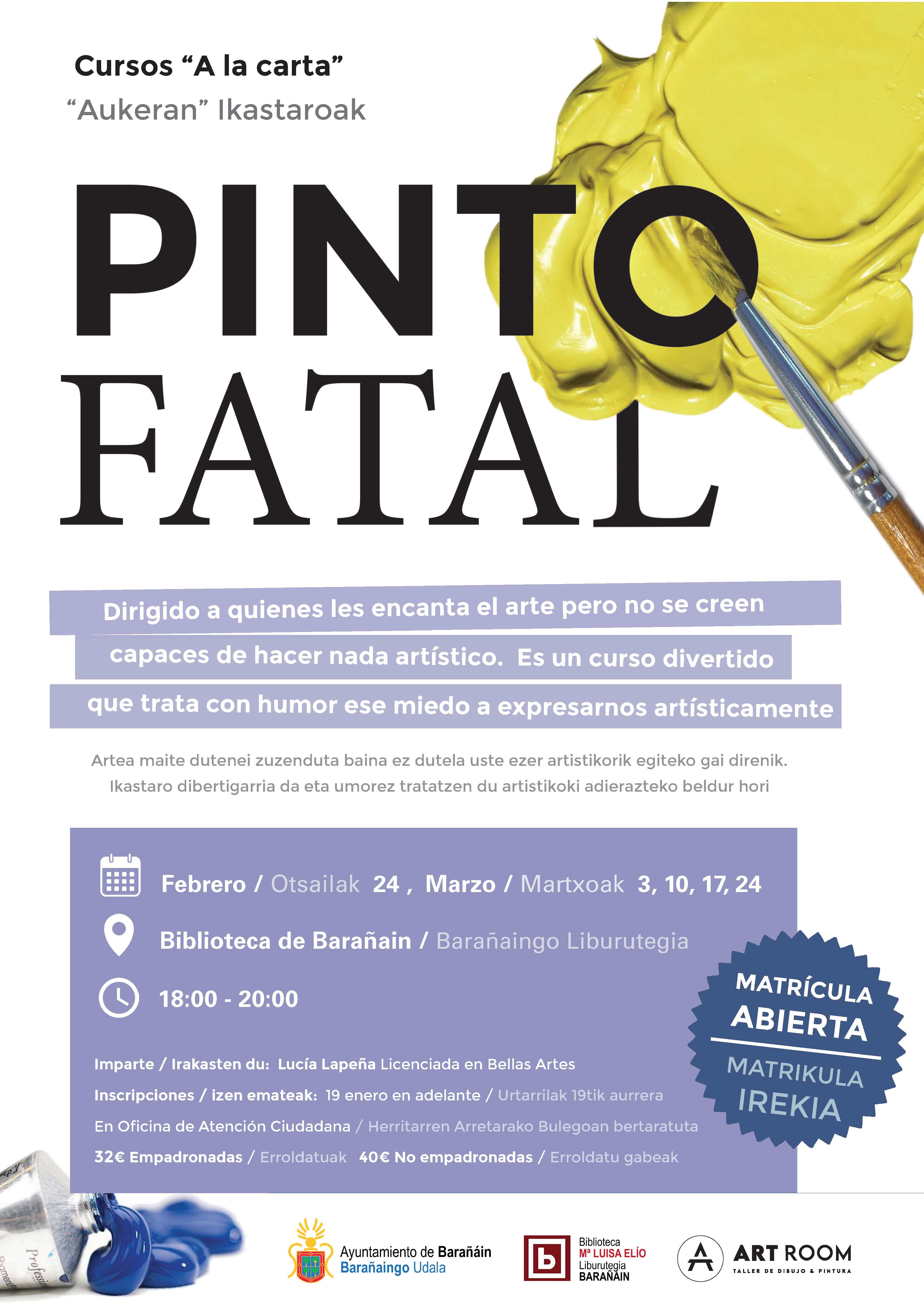 Cursos «A la carta» 2 0 2 6 EN EL 2º CUATRIMESTRE: PINTO FATAL (2. lauhilekoan)