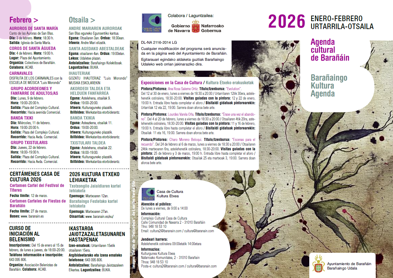 Kultura Agenda URTARRILA-OTSAILA 2026 eta IZEN-EMATE KANPAINA URTARRILean 2. lauhilekoaren kultura ikastaroetarako