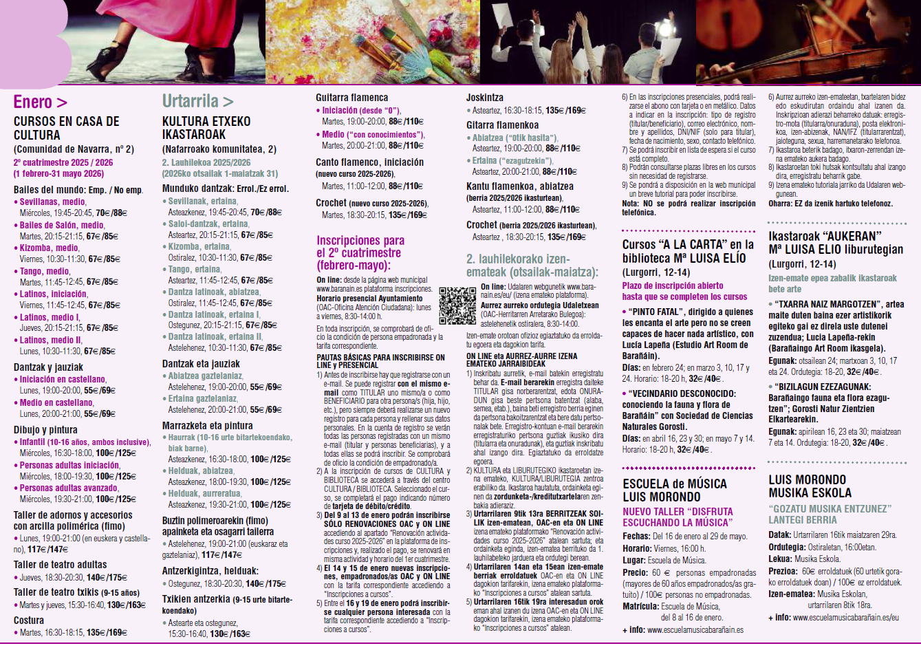 Kultura Agenda URTARRILA-OTSAILA 2026 eta IZEN-EMATE KANPAINA URTARRILean 2. lauhilekoaren kultura ikastaroetarako2026-01-16 08:43:072. Eventos / Ekitaldiak