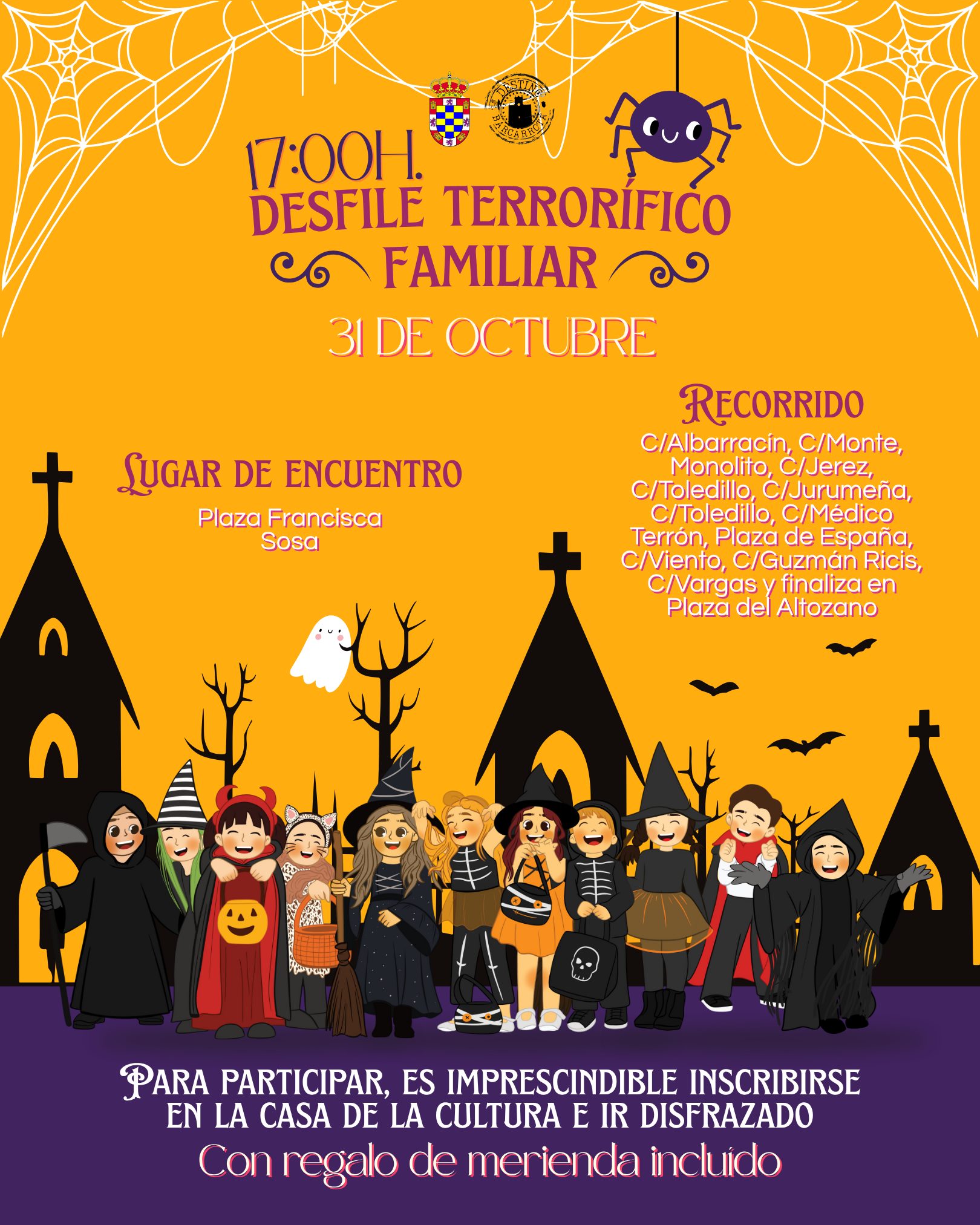 El viernes 31 de octubre, con motivo de la celebración de Halloween en nuestro pueblo, se celebrará un gran desfile terrorífico familiar.