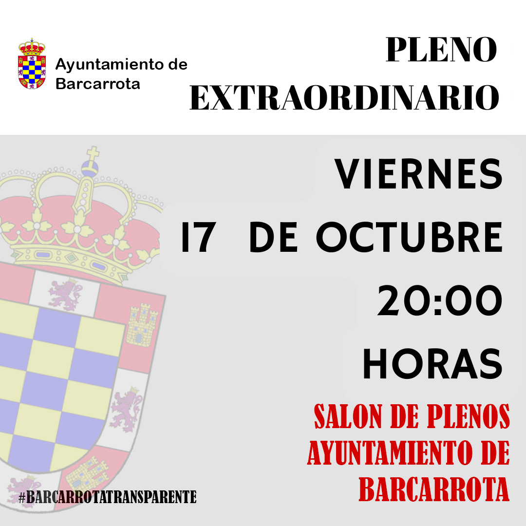 Hoy viernes, 𝟏𝟕 𝐝𝐞 𝐨𝐜𝐭𝐮𝐛𝐫𝐞, se celebrará una sesión extraordinaria del Pleno del Ayuntamiento de Barcarrota.