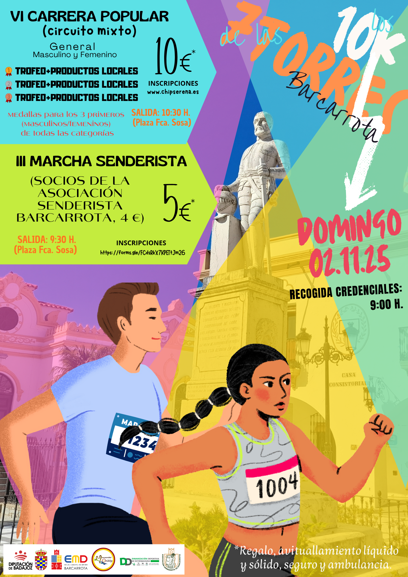 El evento deportivo más deseado por todos los corredores y caminantes: 𝖫𝖮𝖲 𝟣𝟢𝖪 𝖣𝖤 𝖫𝖠𝖲 𝟩 𝖳𝖮𝖱𝖱𝖤𝖲 de Barcarrota, serán el domingo 2 de noviembre de 2025.