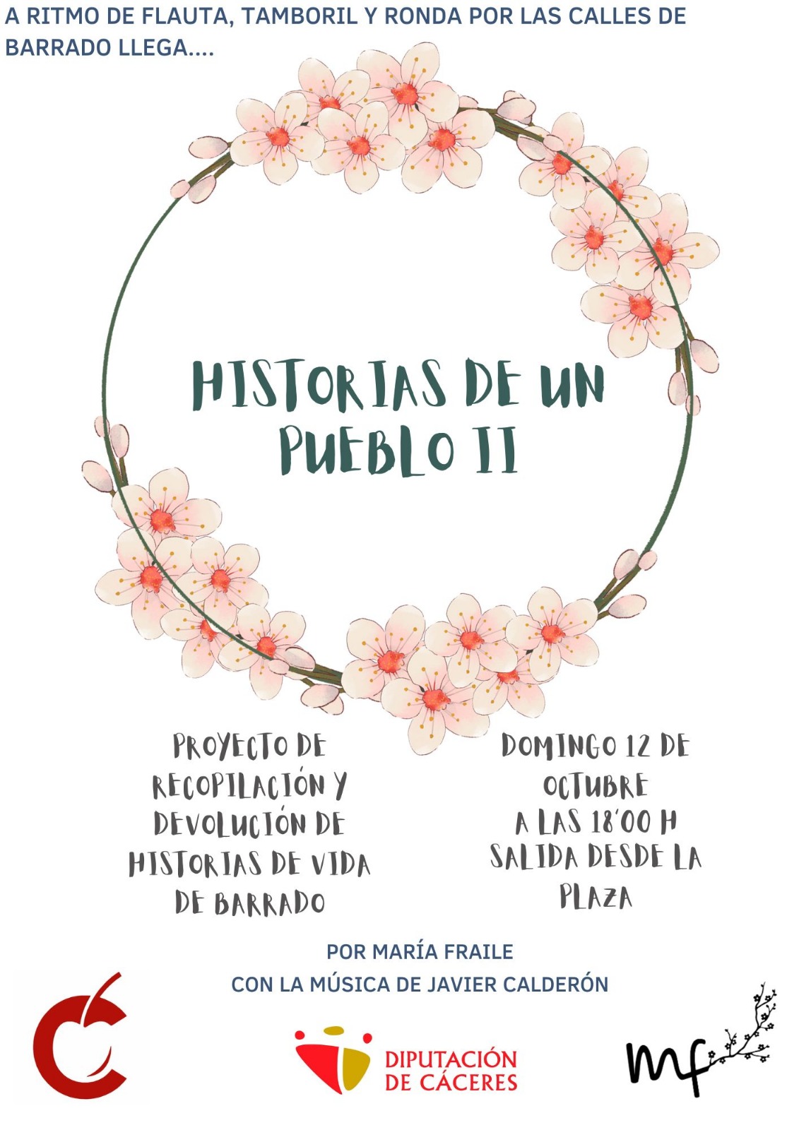 👉 Saldremos a las 6 de la tarde desde la Plaza y recorreremos calles del pueblo escuchando historias y leyendas de Barrado contadas por Maria Fraile acompañada de la flauta y tamboril de Javier Calderón.