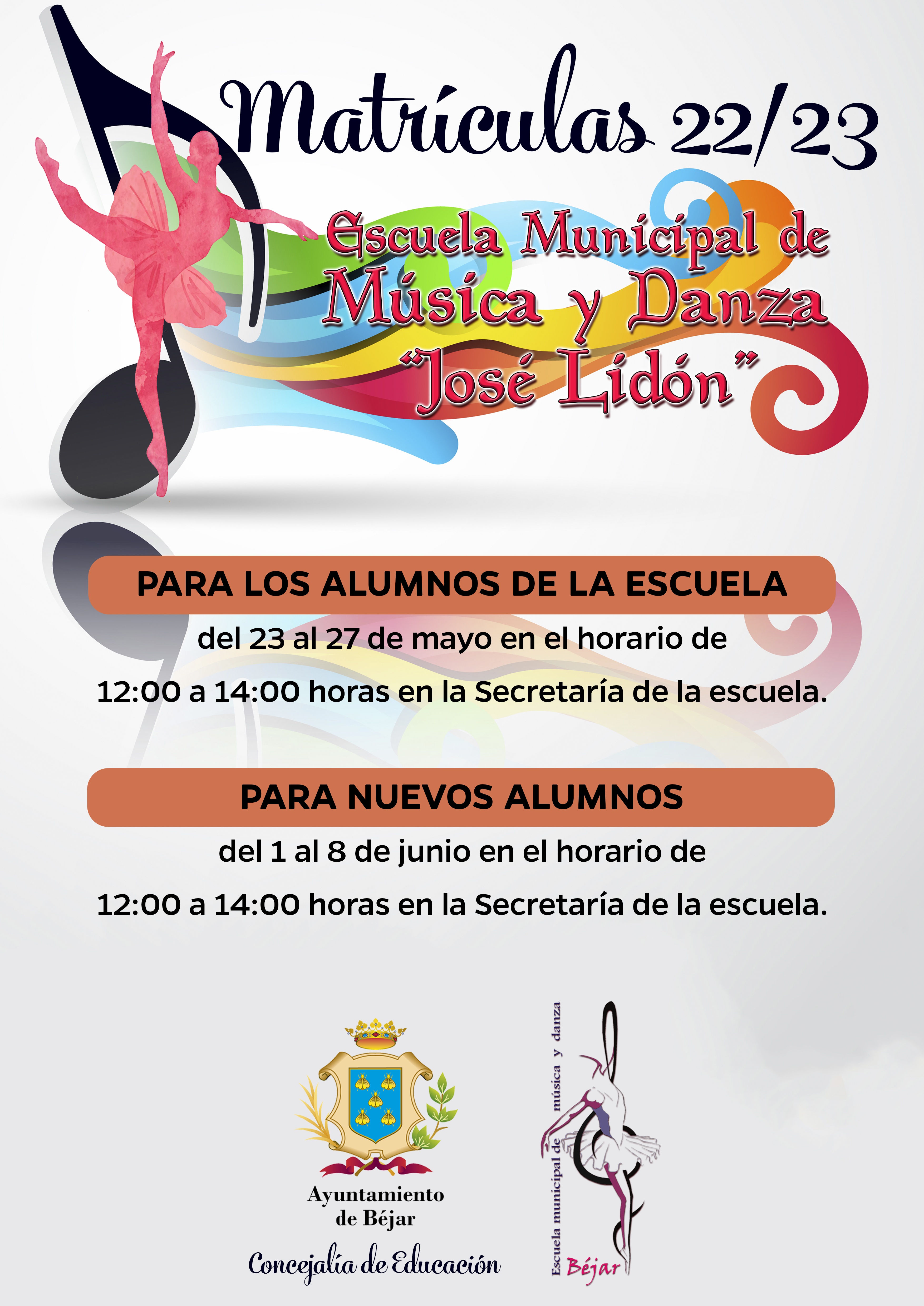 ✔️Abierto el plazo de matrícula de la Escuela Municipal de Música y Danza José Lidón.2022-05-25 14:27:23Educación