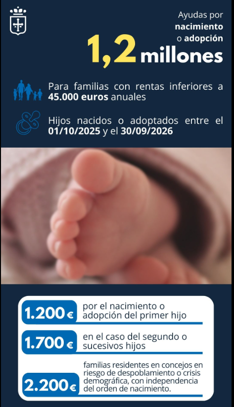 Ya está abierta la convocatoria de ayudas a la natalidad y adopción en Asturias
