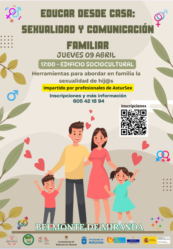 El jueves, 9 de abril, a las 17:00 h tendrá lugar un taller en Belmonte de Miranda sobre educación familiar en sexualidad y comunicación.
