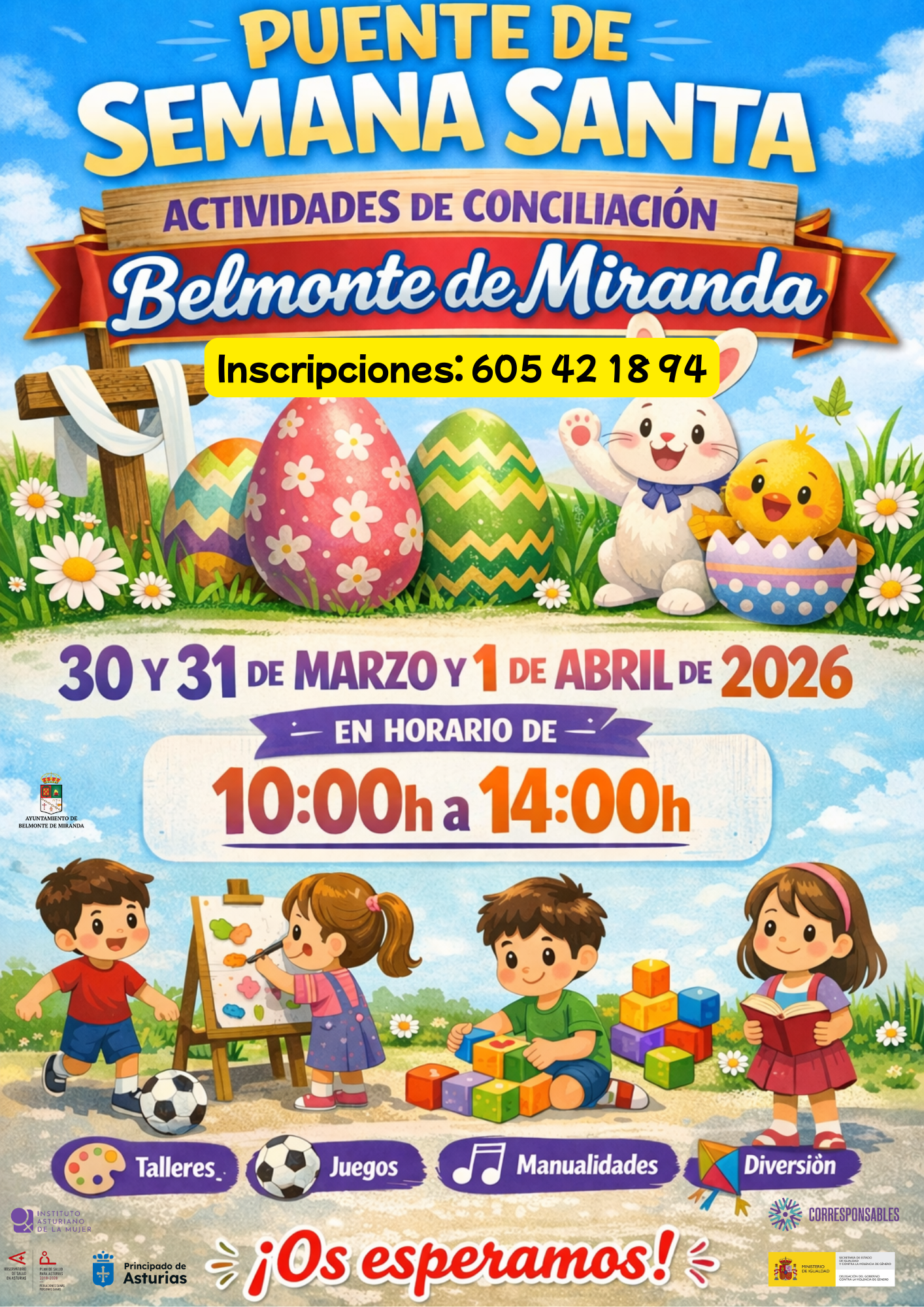 📢 Desde el Ayuntamiento de Belmonte de Miranda ponemos en marcha un espacio de conciliación durante el puente de Semana Santa dirigido a niñas y niños.