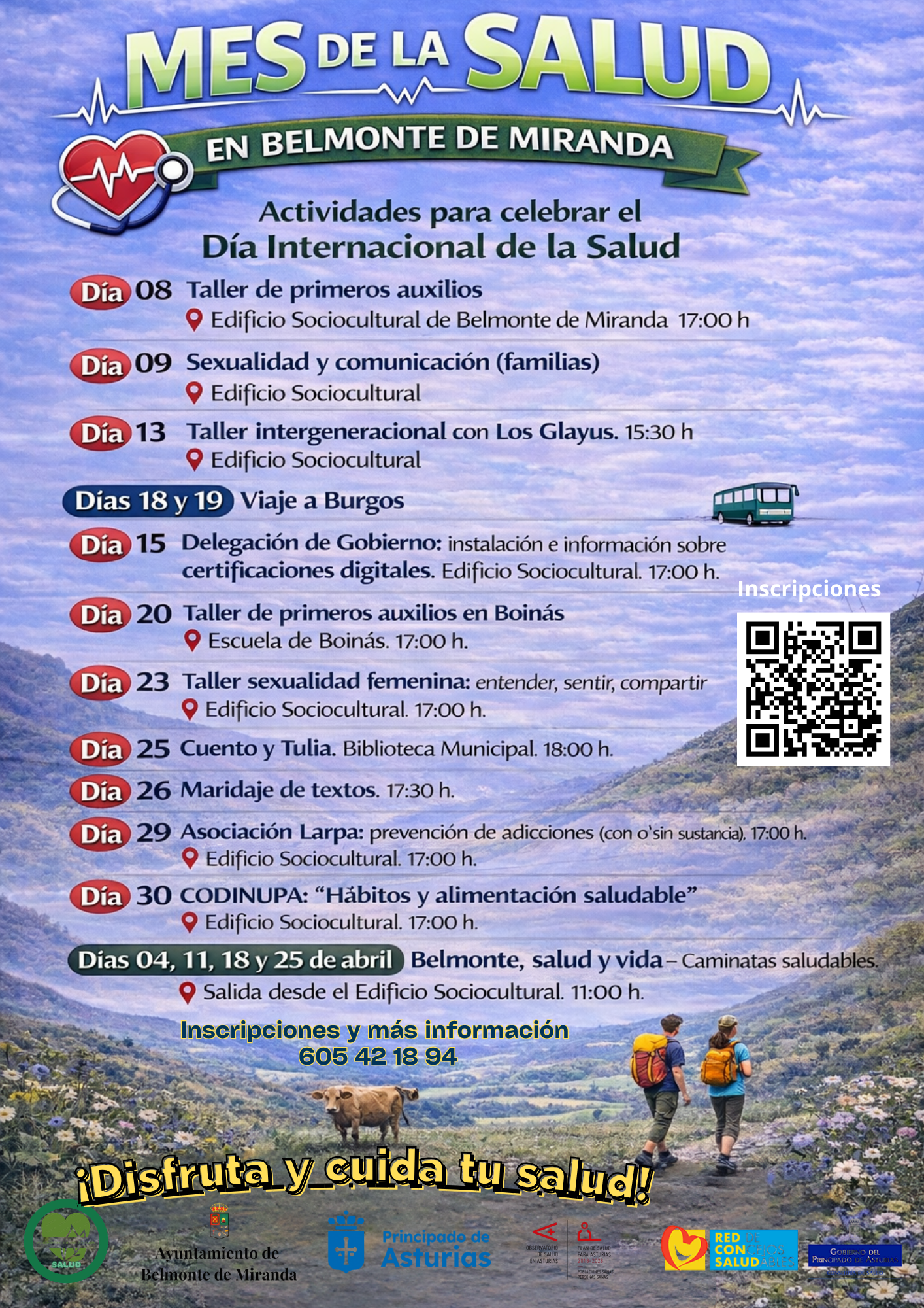 Con motivo del Día Internacional de la Salud (7 de abril), el Ayuntamiento de Belmonte de Miranda pone en marcha una serie de actividades a lo largo del mes de abril para fomentar hábitos de vida saludables.