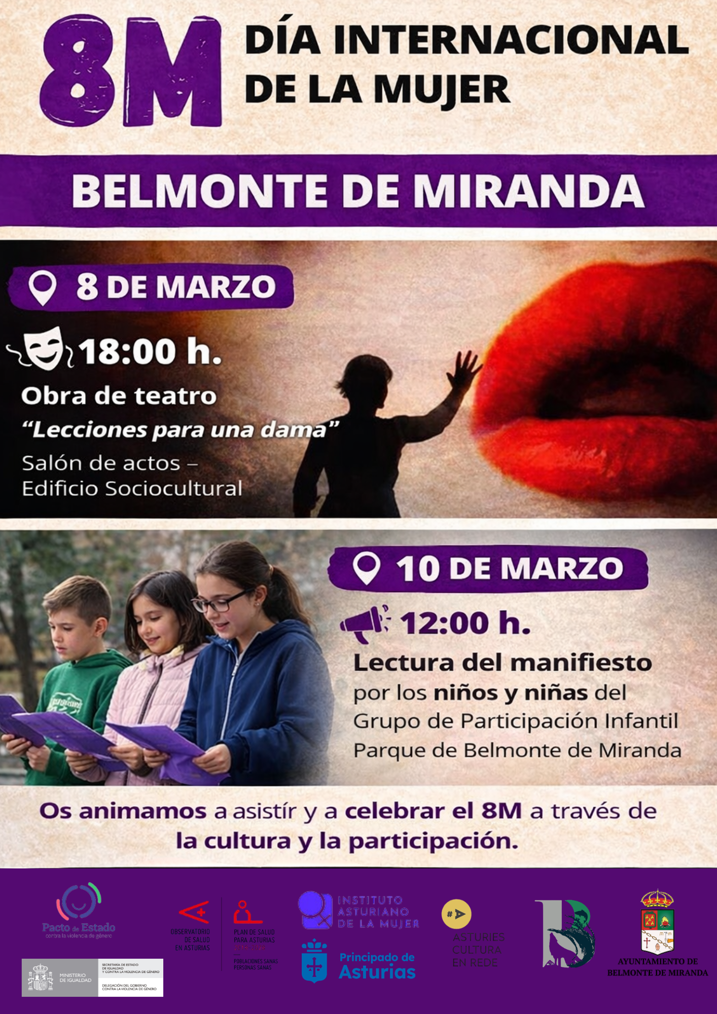 Este 8 de marzo 💜, conmemoramos el Día Internacional de la Mujer con teatro en Belmonte de Miranda.