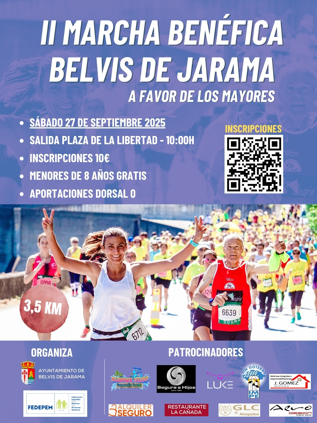 El próximo 27 de septiembre celebraremos en nuestro municipio la Marcha Benéfica a favor de los Mayores, una jornada solidaria y de convivencia en la que todos podemos participar.