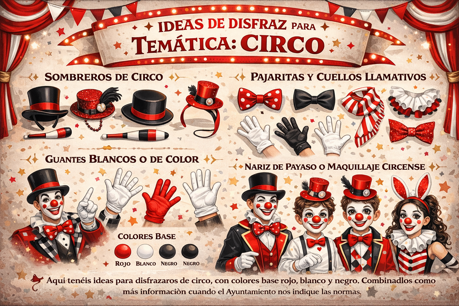 Nos inspiraremos en el mundo del circo, con disfraces libres pero manteniendo algunos elementos comunes para ir todos en la misma línea: