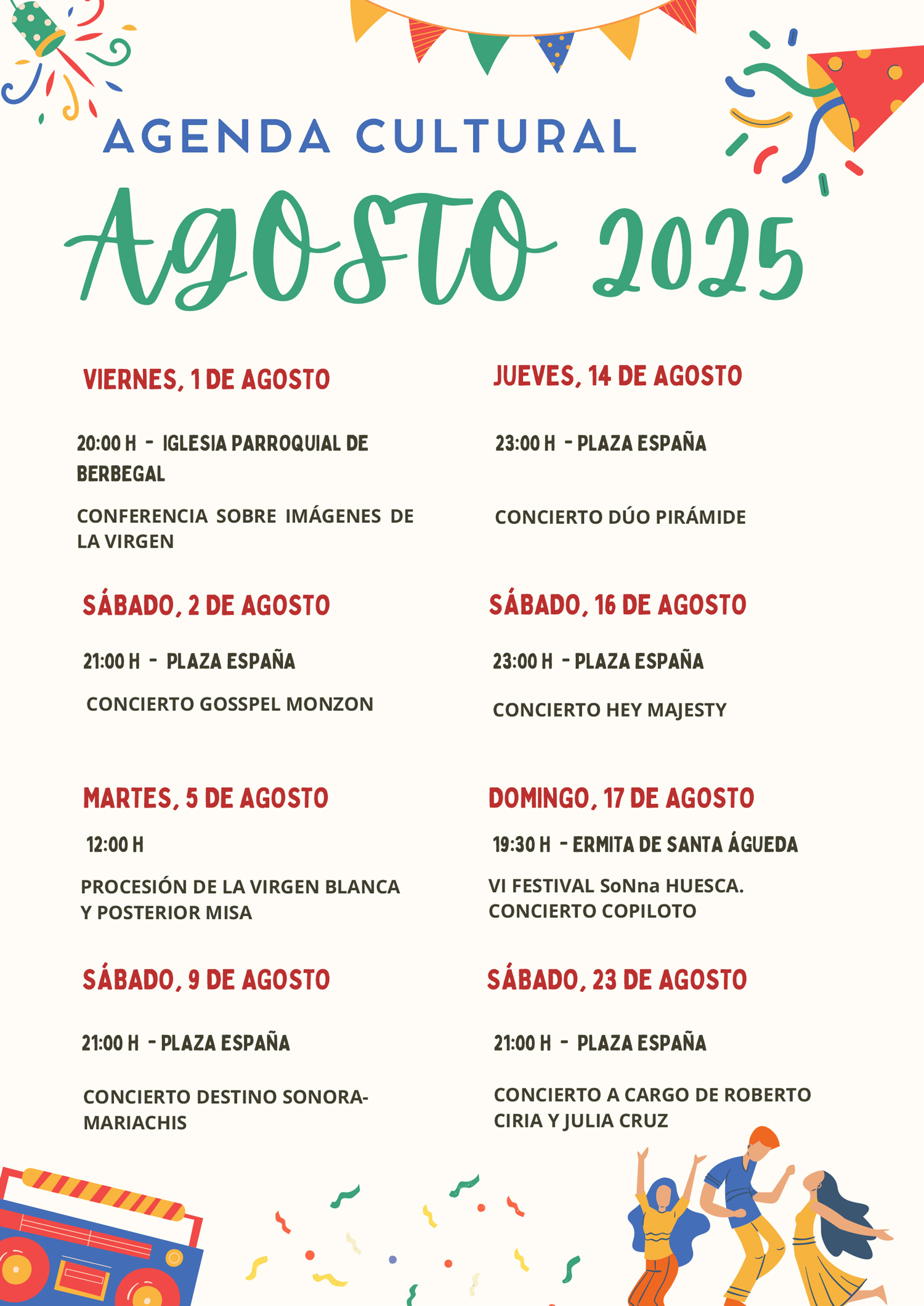 Agenda cultural de agosto 2025 en Berbegal