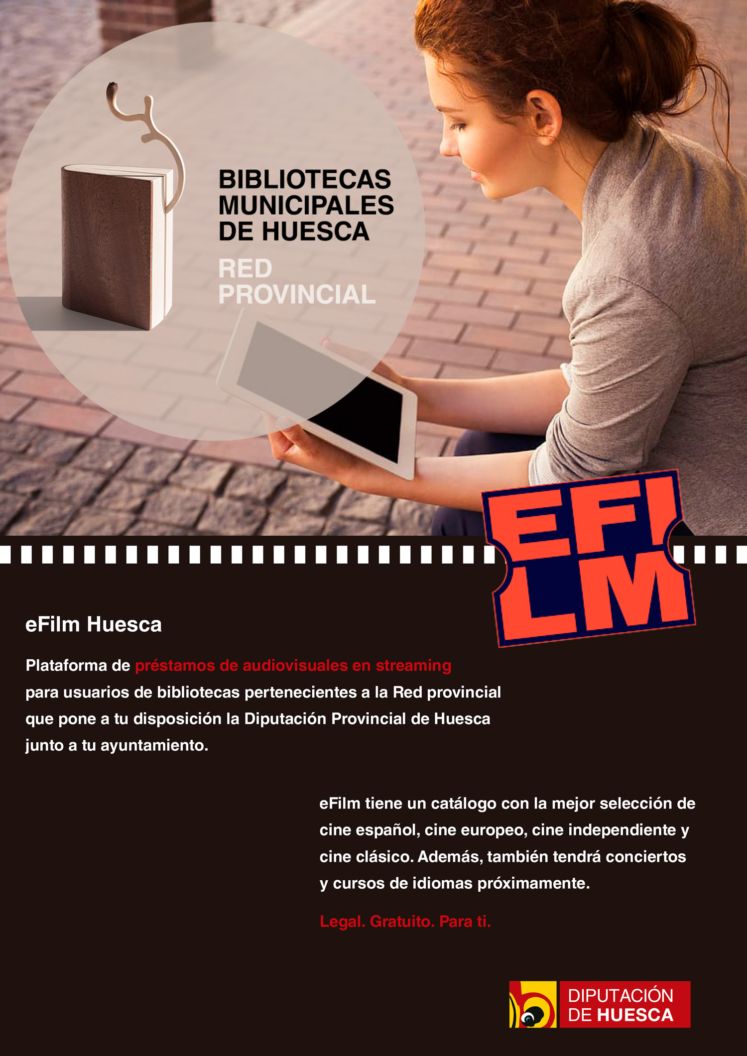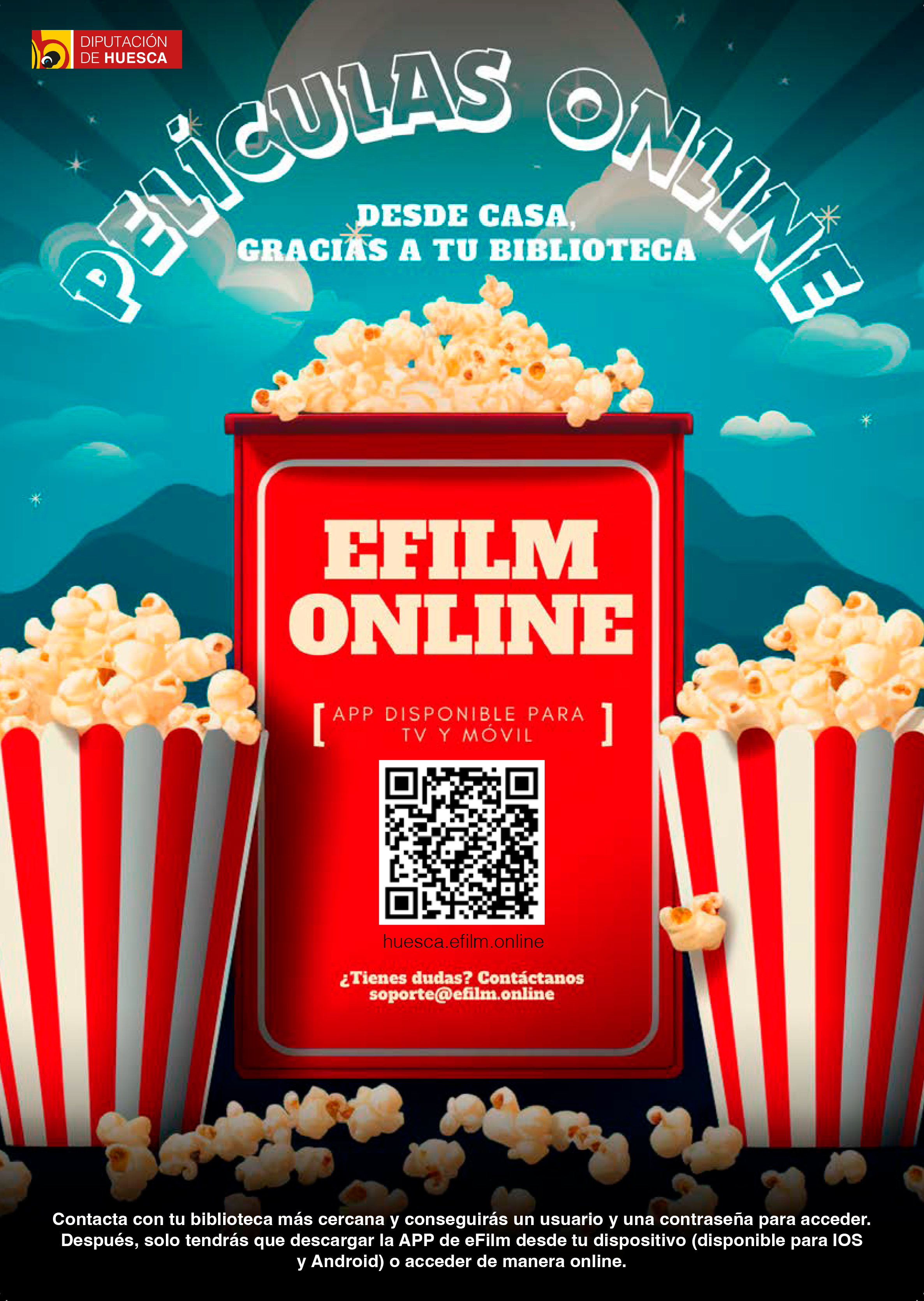 La Biblioteca de Berbegal, gracias a la colaboración con la Diputación Provincial de Huesca, incorpora un nuevo servicio gratuito de préstamo de audiovisuales en streaming: eFilm Huesca.