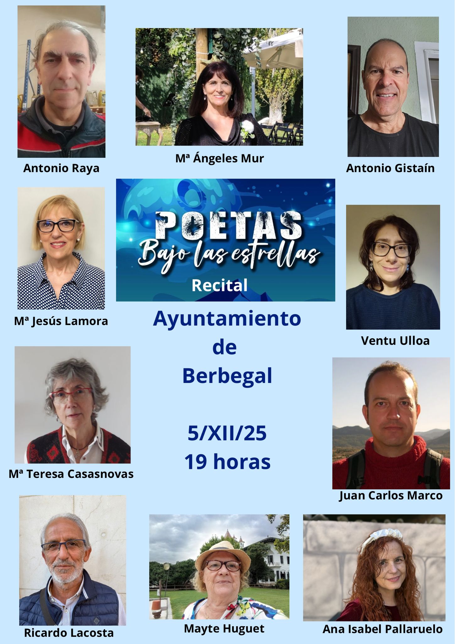 19:00 h · Encendido de luces y recital poético "Bajo las estrellas". Ayuntamiento de Berbegal